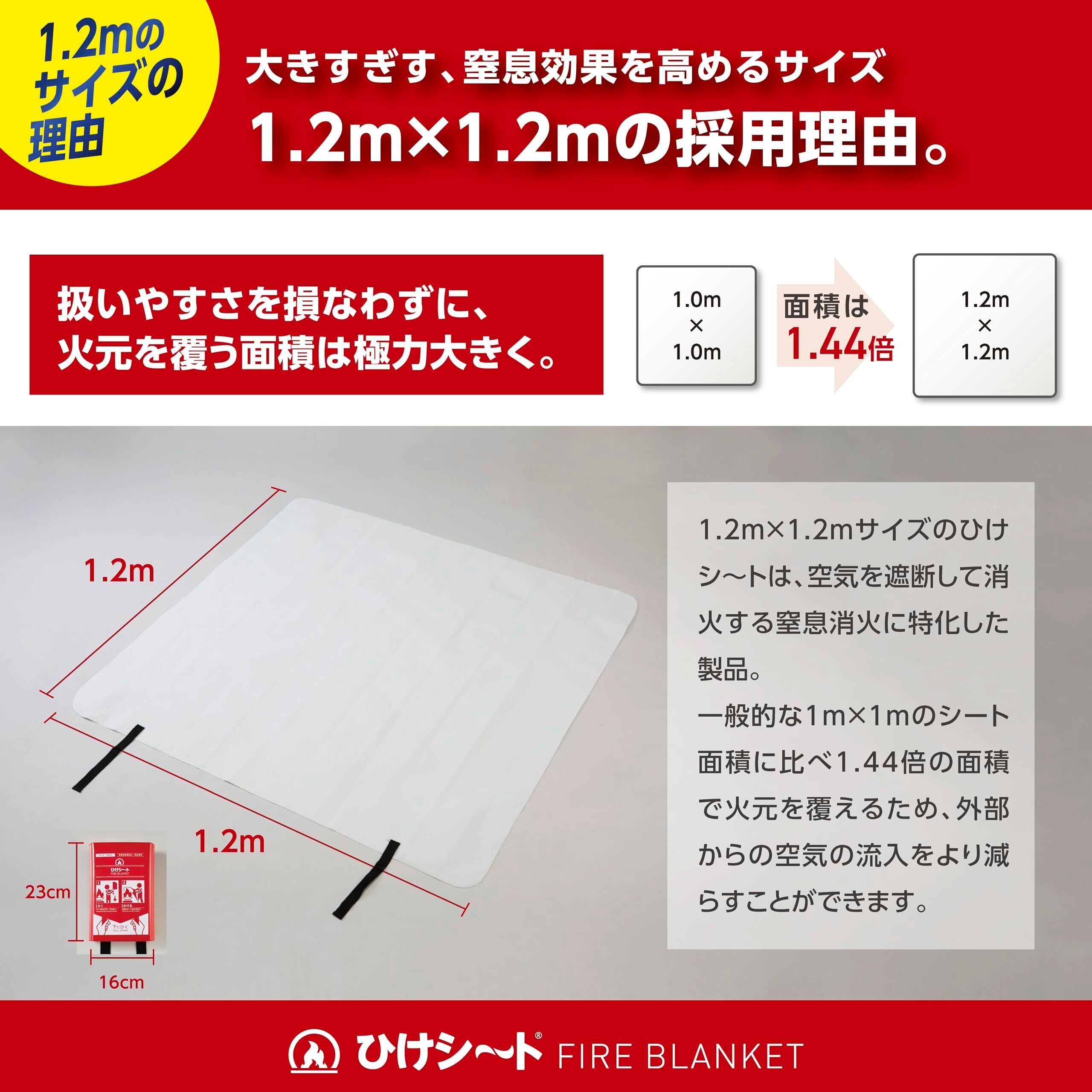 ガラス繊維のシートに窒息消火の効果を高めるシリコンコーティングを施しています。消火器に次ぐ「セカンド消火ツール」として最適です。
