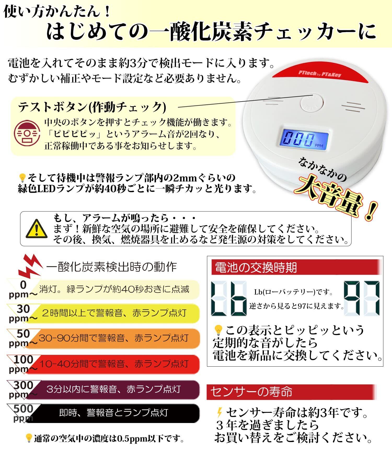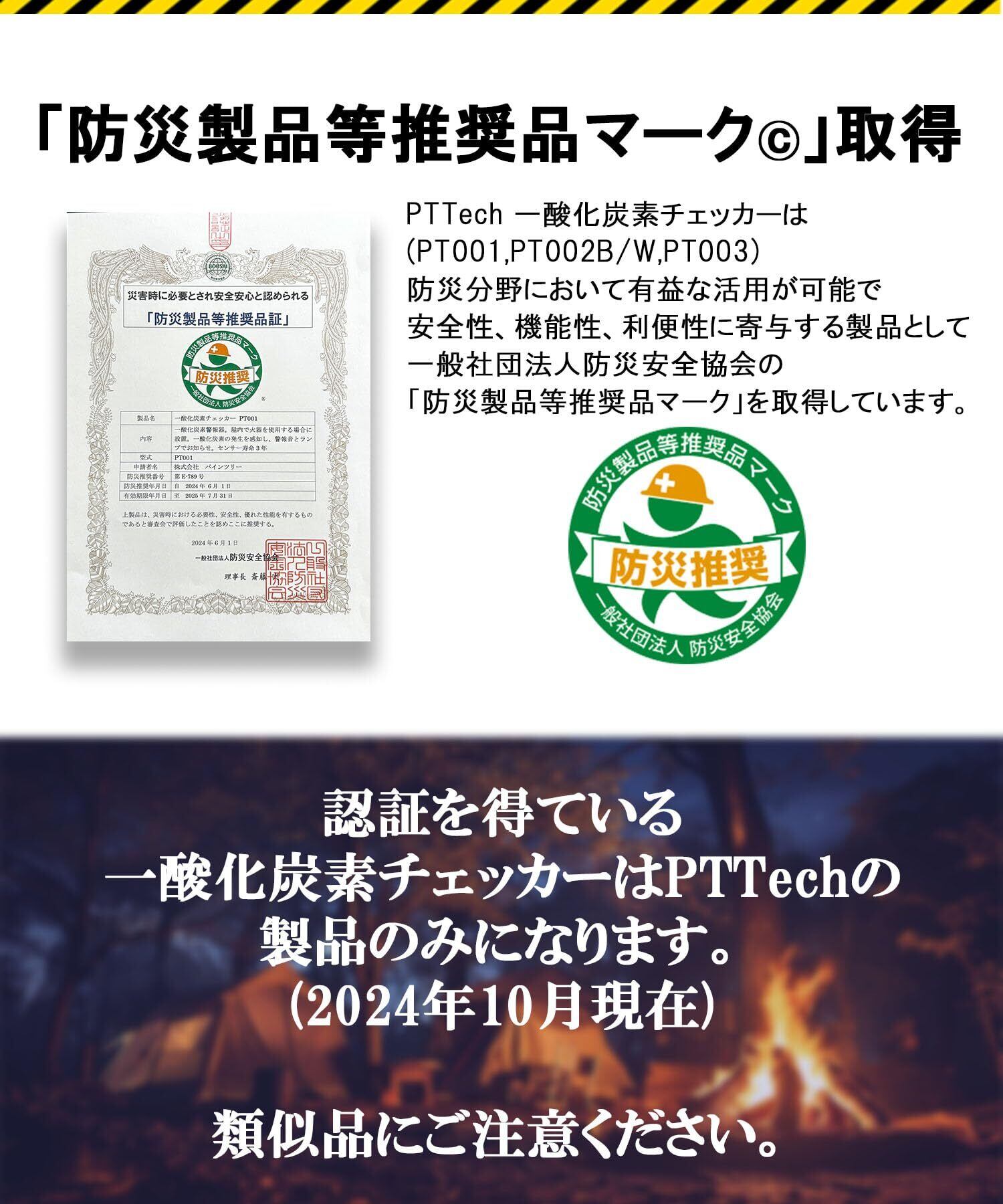 【 防災製品等推奨マーク認証品】PTTech 一酸化炭素チェッカーキャンプ用 車中泊 防災用品 丁寧な図解説明書つき (PT001あかまる)