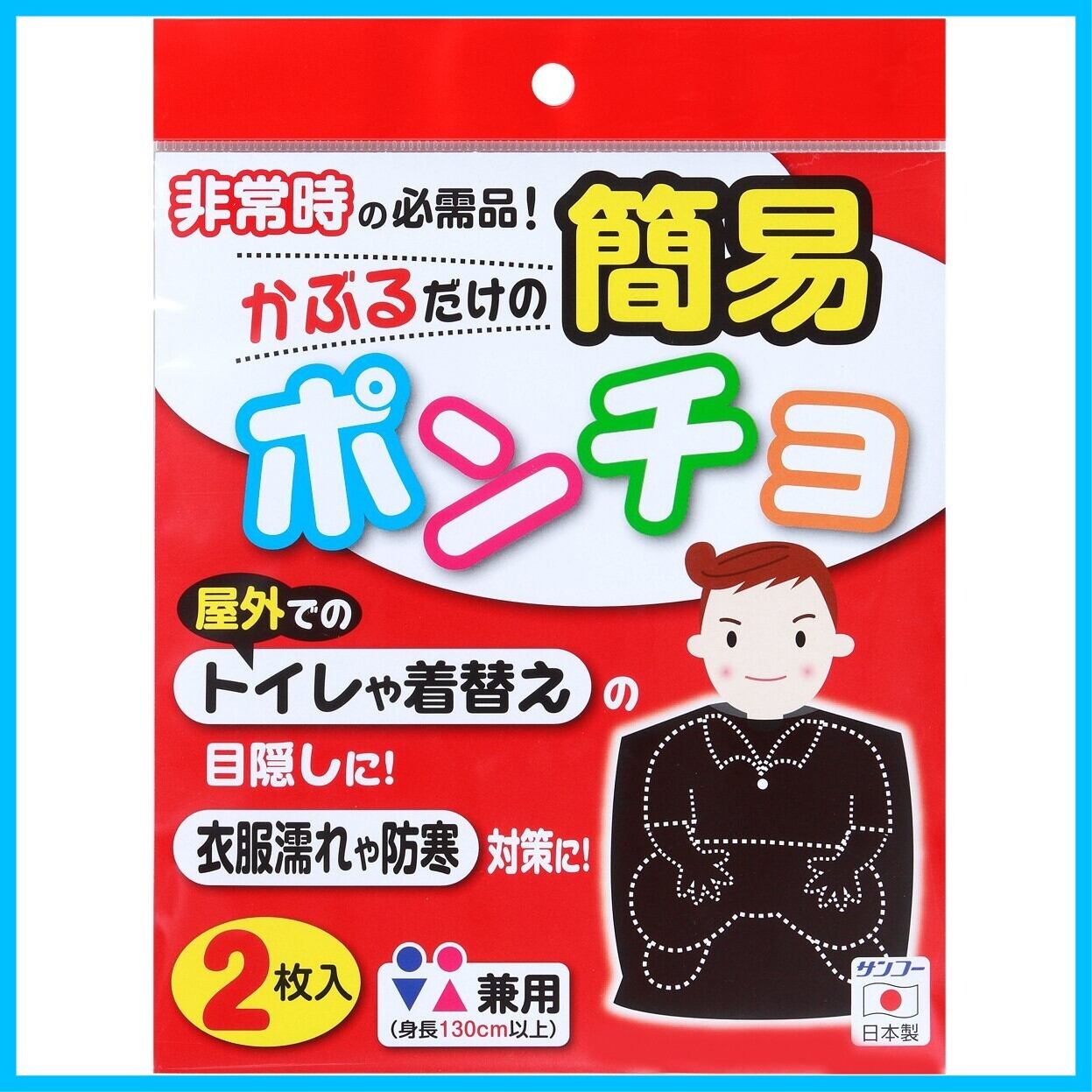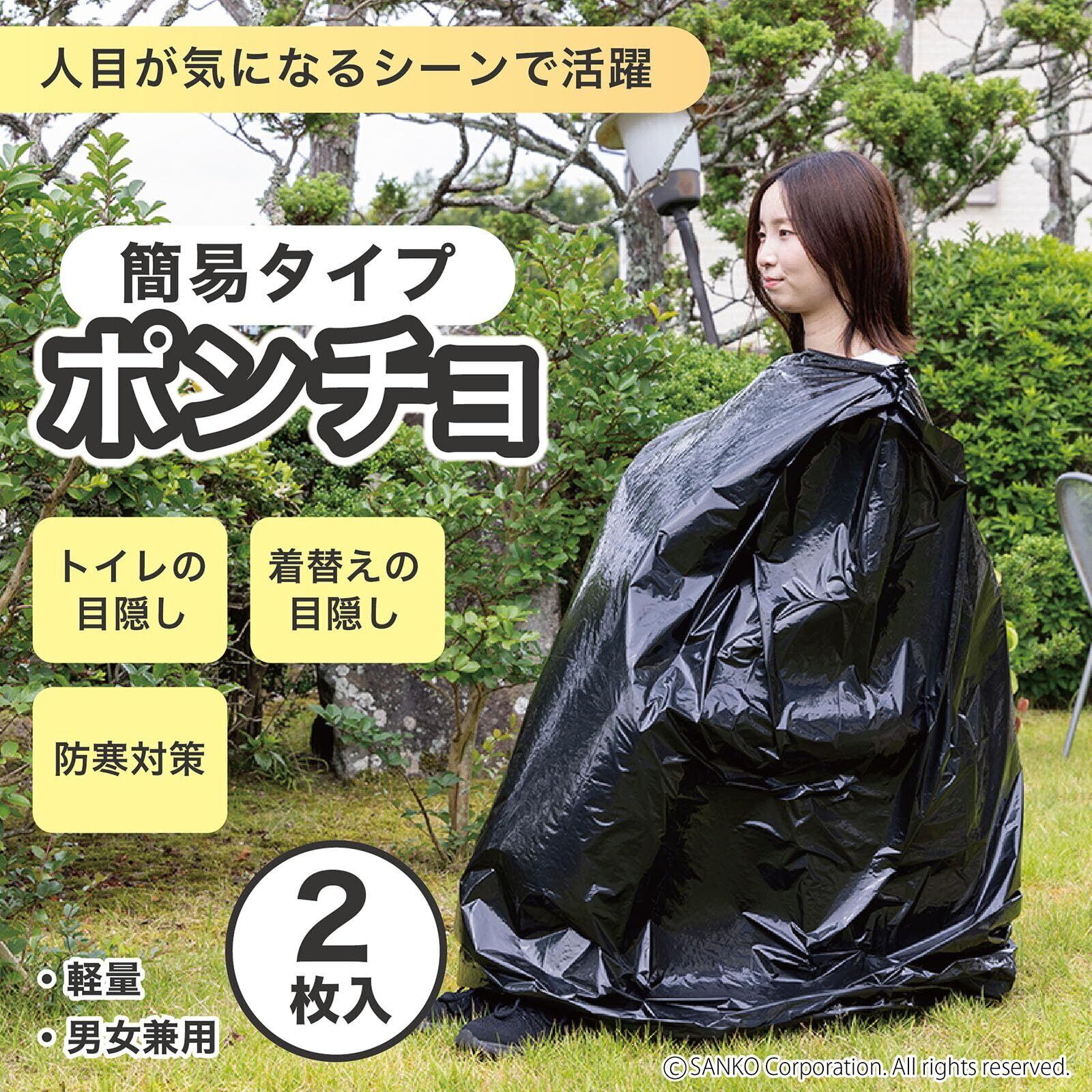 Sanko サンコー 防災用 携帯 大雨 目隠し 簡易ポンチョ 2枚入 ブラック 日本製 CL-53