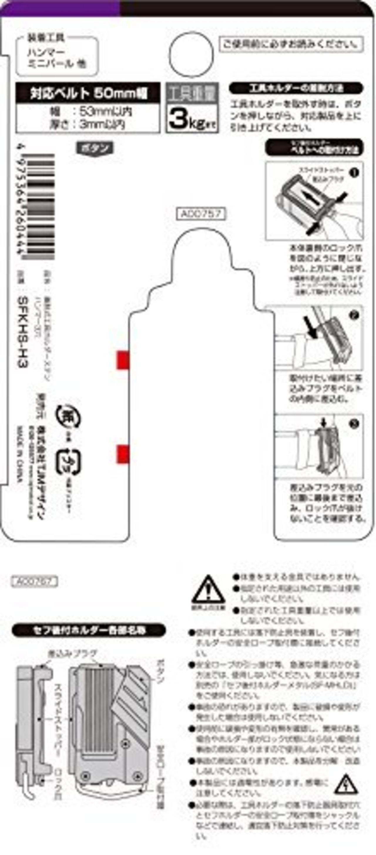 タジマ セフシステム 着脱式工具ホルダー 高耐久極太ステン ハンマー3穴 SFKHS-H3 着脱楽々 ベルトに後から装着可能 腰道具の組み換えが簡単 使う道具だけを選んで装着 腰の負担軽減 工具の落下防止