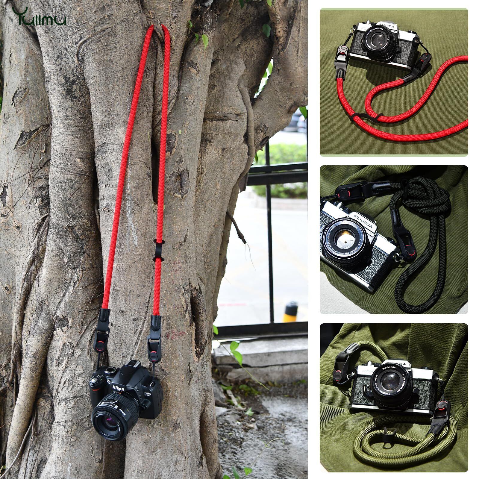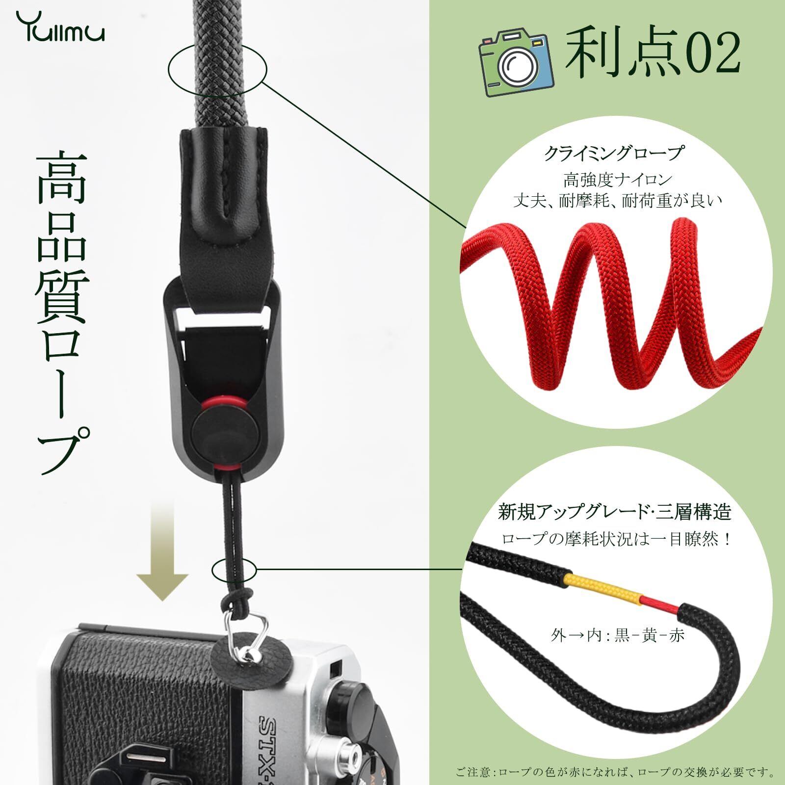 [Yullmu] カメラストラップ カメラネックストラップ アンカー設計 三角リング付き 3層構造 一眼レフカメラ クライミングロープ 緑