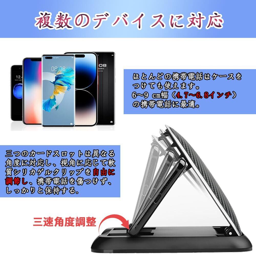 2.角度調整可能:一対のゴムホルダは厚さ15 mm以内の携帯電話に適しており、コンソールパッドに簡単に挿入すれば調整が可能である。ブラケットは角度を調整でき、範囲は約100°〜120°で、使用場面と姿勢に応じて画面方向を調整する。スタンドは取り外しやすく、携帯電話を水平に置き、運転中にGPSナビゲーションを使いやすい。このスマートフォンスタンドは走行視線を妨げることはありません。