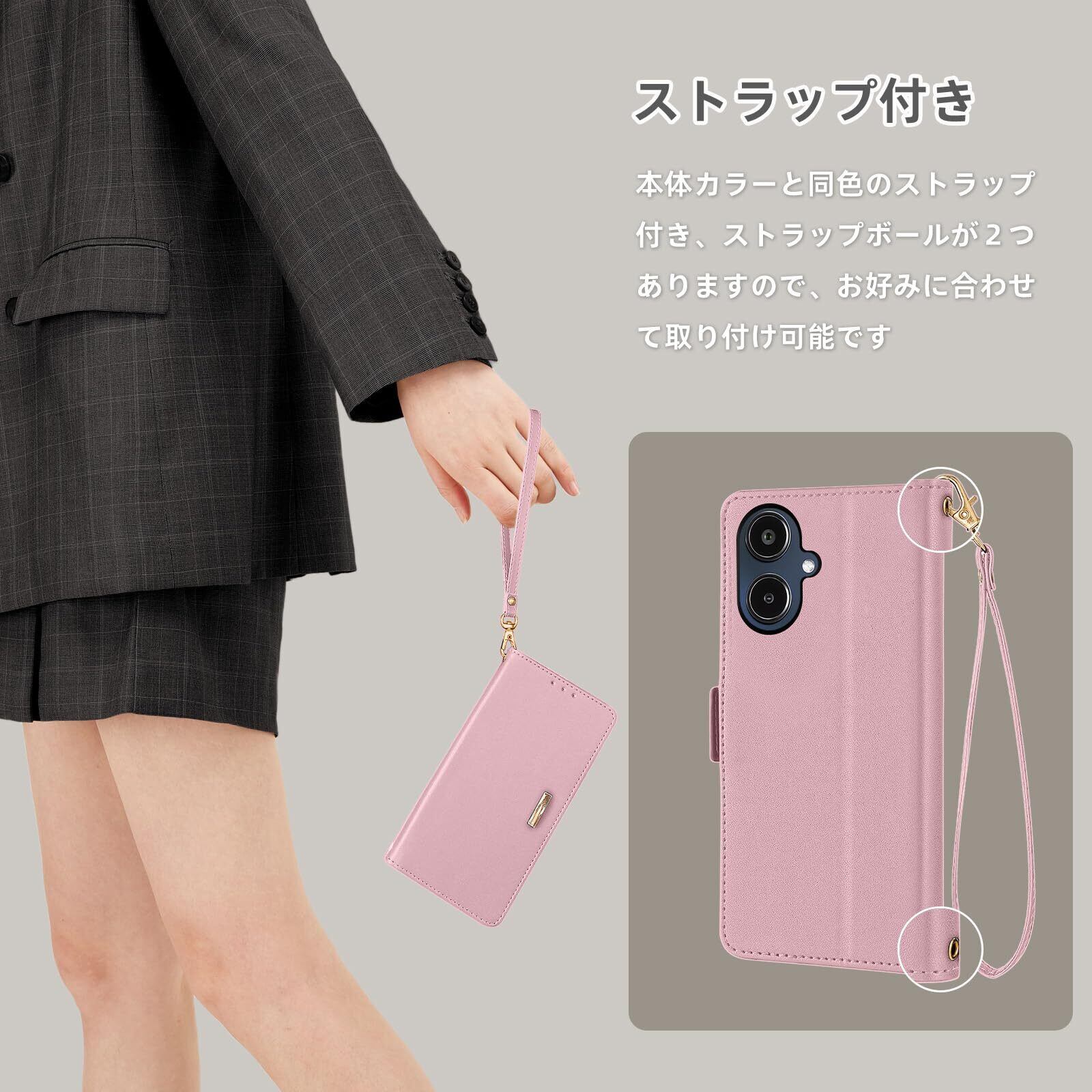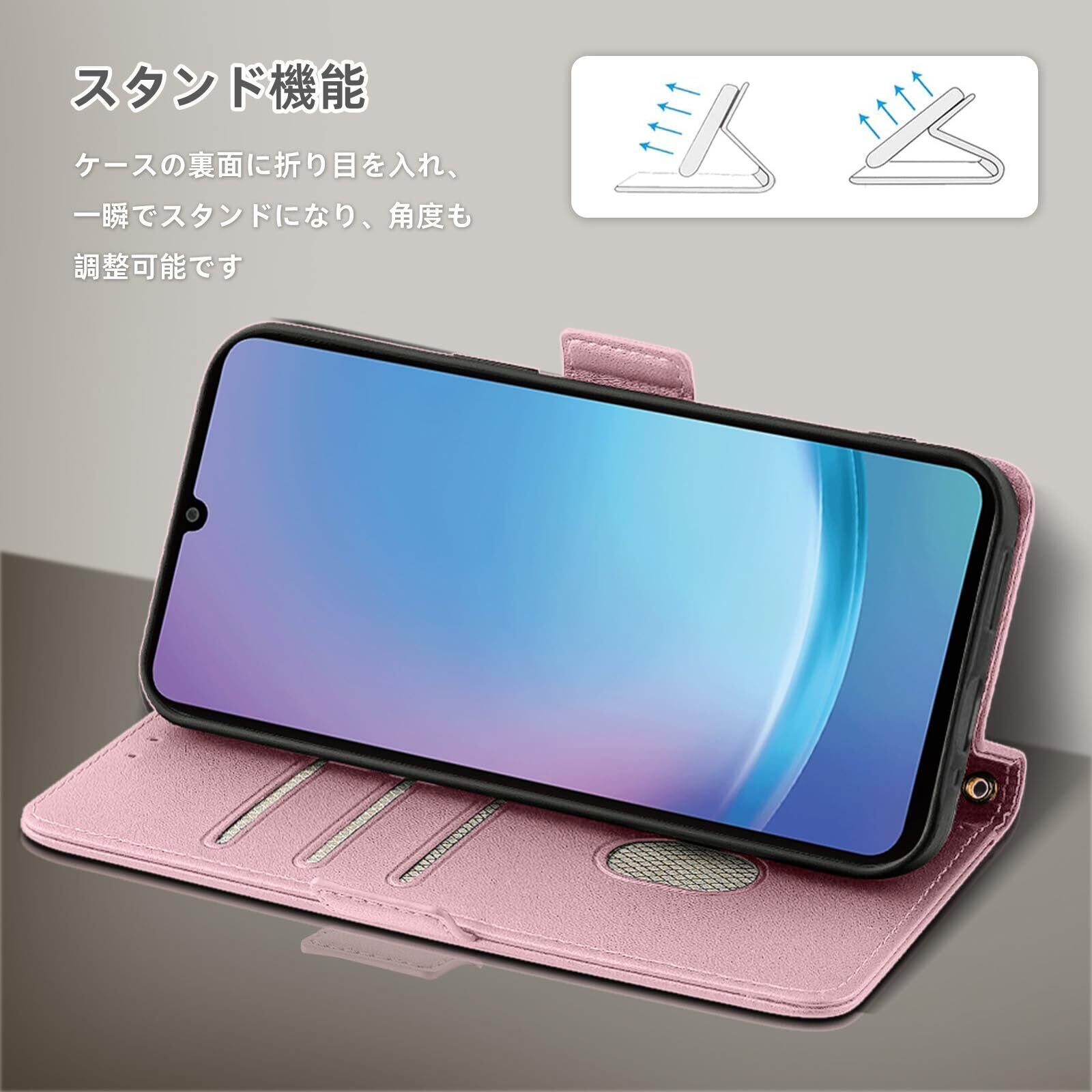 RanBluu コンパチブル Samsung Galaxy A25 5G SC-53F 日本版ケース 手帳型 日本版 サムスン ギャラクシー A25 5g sc-53f 用 レザーケース 携帯カバー スマホケース 財布型 カード収納 マグネット開閉 カメラ保護 横置きスタンド機能 ストラップ付き 耐摩擦 耐衝撃 全面保護(Samsung Galaxy A25 5G SC-53F 対応 ピンク)