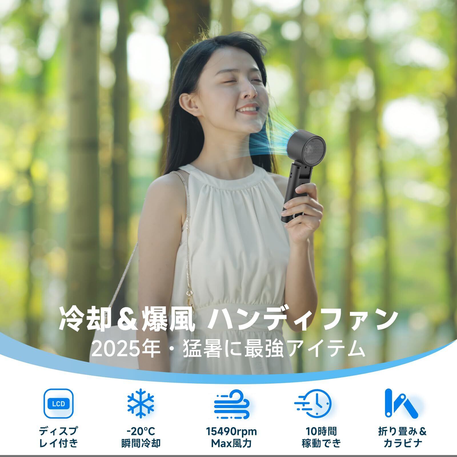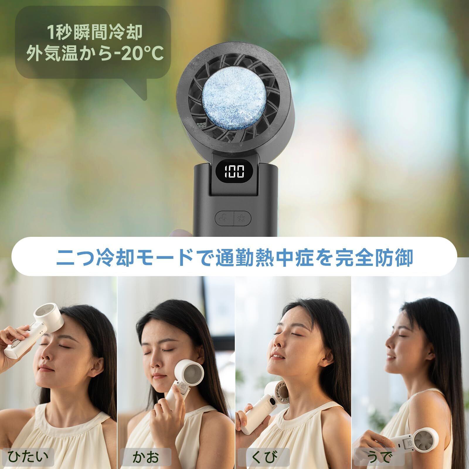 【冷却プレート ハンディファン】このハンディファンには独冷却プレートが内蔵され、冷却モードが2段階調節可能で、即効冷却が必要なシーンに最適できます。デスクワークやアウトドアでの熱中症予防に効果的な設計です。