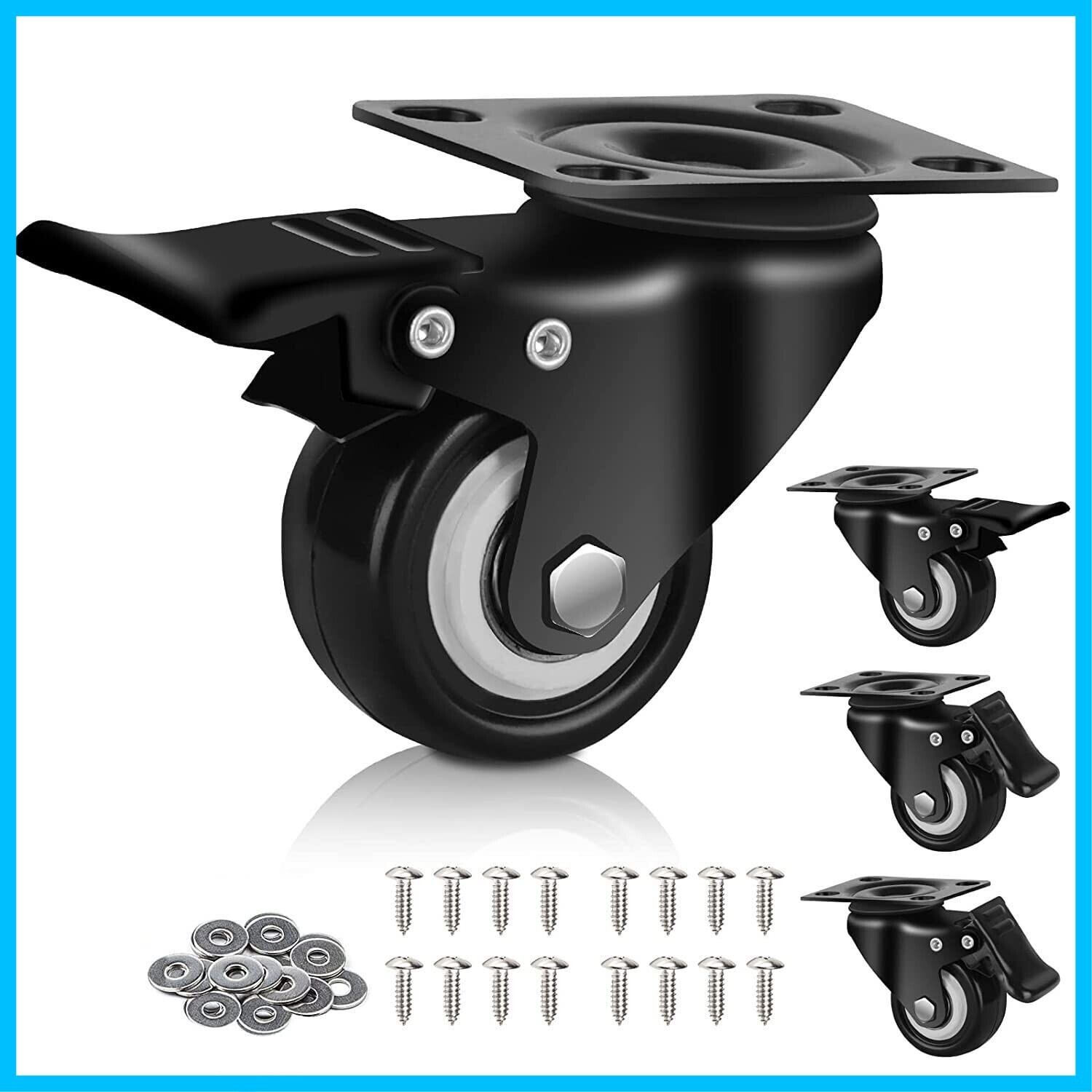 Zalslei プレート式 キャスター 車輪 ブレーキ付き 1.5インチ 4個耐荷重200kg 360度回転 高耐久性 ストッパー付き 自在キャスター ネジ付き 取替えDIY用 交換用 便利グッズ 4個セット ホイール径38mm