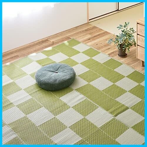 萩原 洗える い草風カーペット グリーン 江戸間2畳 約174X174cm 「矢倉」 ラグ 花ござ モダン 和風 市松柄
