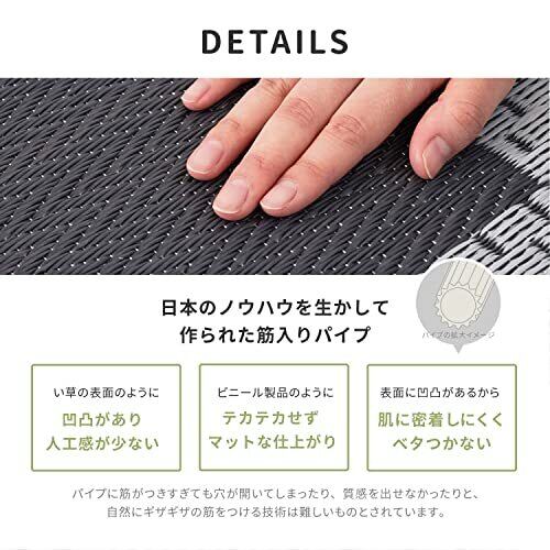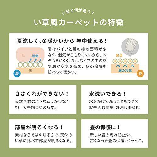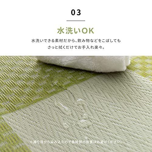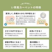 見た目は、い草の上敷きのようですが、実は、ポリプロピレン素材などを使用して織り込んだ敷物で、強度がしっかりとしています。水こぼしや汚れに強く、お手入れも簡単だから、小さなお子様やペットのいるご家庭にもおすすめです。