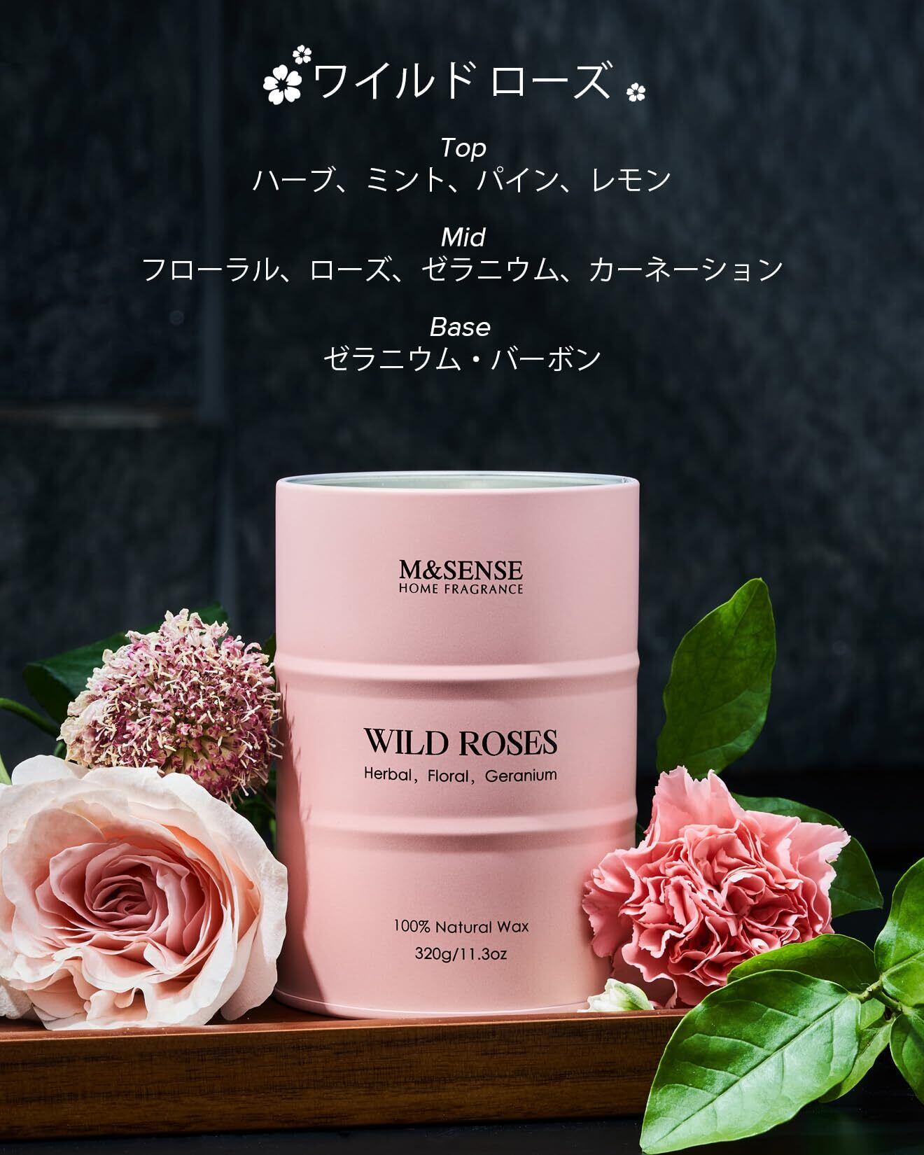 M&SENSE アロマキャンドル 人気 ワイルドローズの香り 大型 320g 70時間 おしゃれ ソイキャンドル 癒しグッズ ホワイトデー バレンタイン 母の日 ギフト 女性向け プレゼント