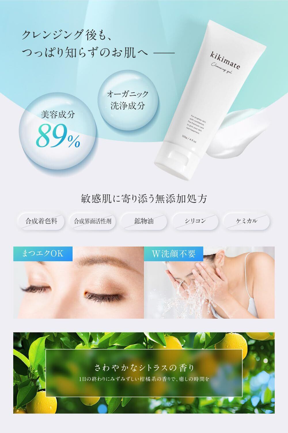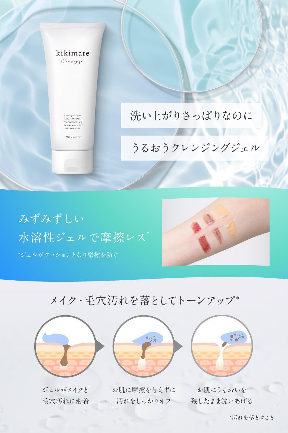 kikimate クレンジングジェル メイク落とし クレンジングフォーム【W洗顔不要 まつエクOK】 毛穴汚れ 黒ずみ用 敏感肌 乾燥肌 オイルフリー 無添加 オーガニック 保湿 120g ギフト プレゼント キキメイト