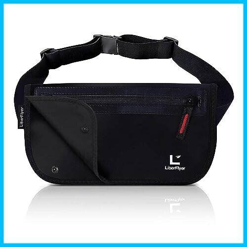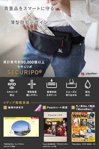 [LiberFlyer] セキュリポ(SECURIPO)セキュリティウエストポーチ 防水 ((ブラック(赤ジッパー)))