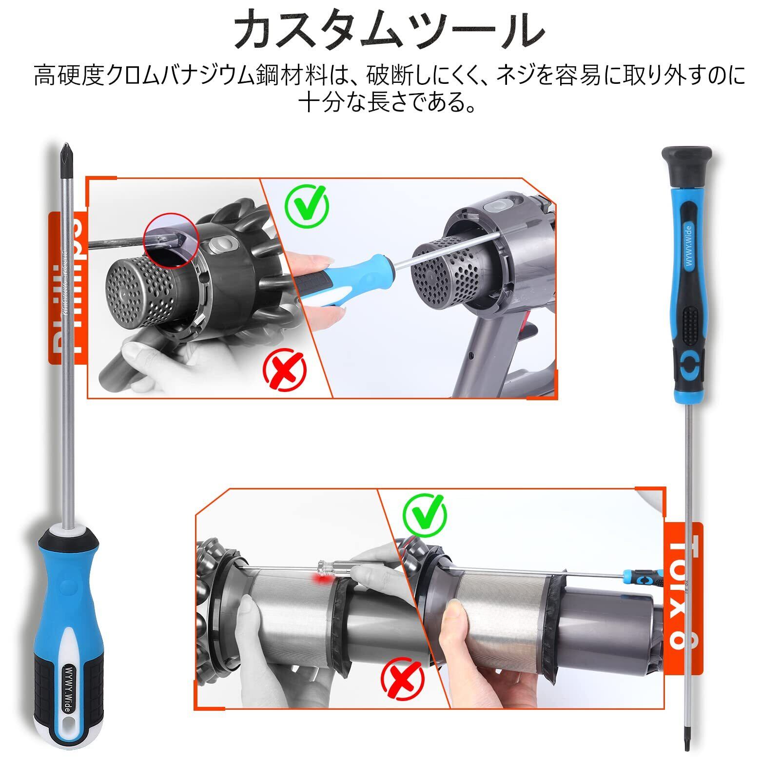 カスタマイズドライバーセット対応ダイソン V6 V7 V8 V10 V11 V15 掃除機 メンテナンス・クリーニング 分解工具セット