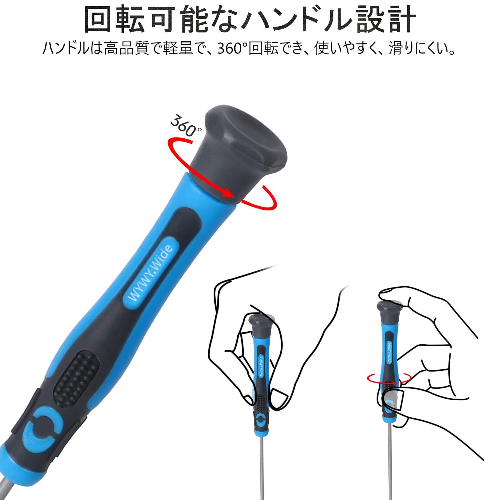 【特殊素材とデザイン】ドライバーについては、特殊な素材である「クロムバナジウム鋼」を選んでカスタマイズしました。T8ドライバーの上部がハンドルと分離しているので、ハンドルが360°回転し、使いやすく、滑りにくいです。