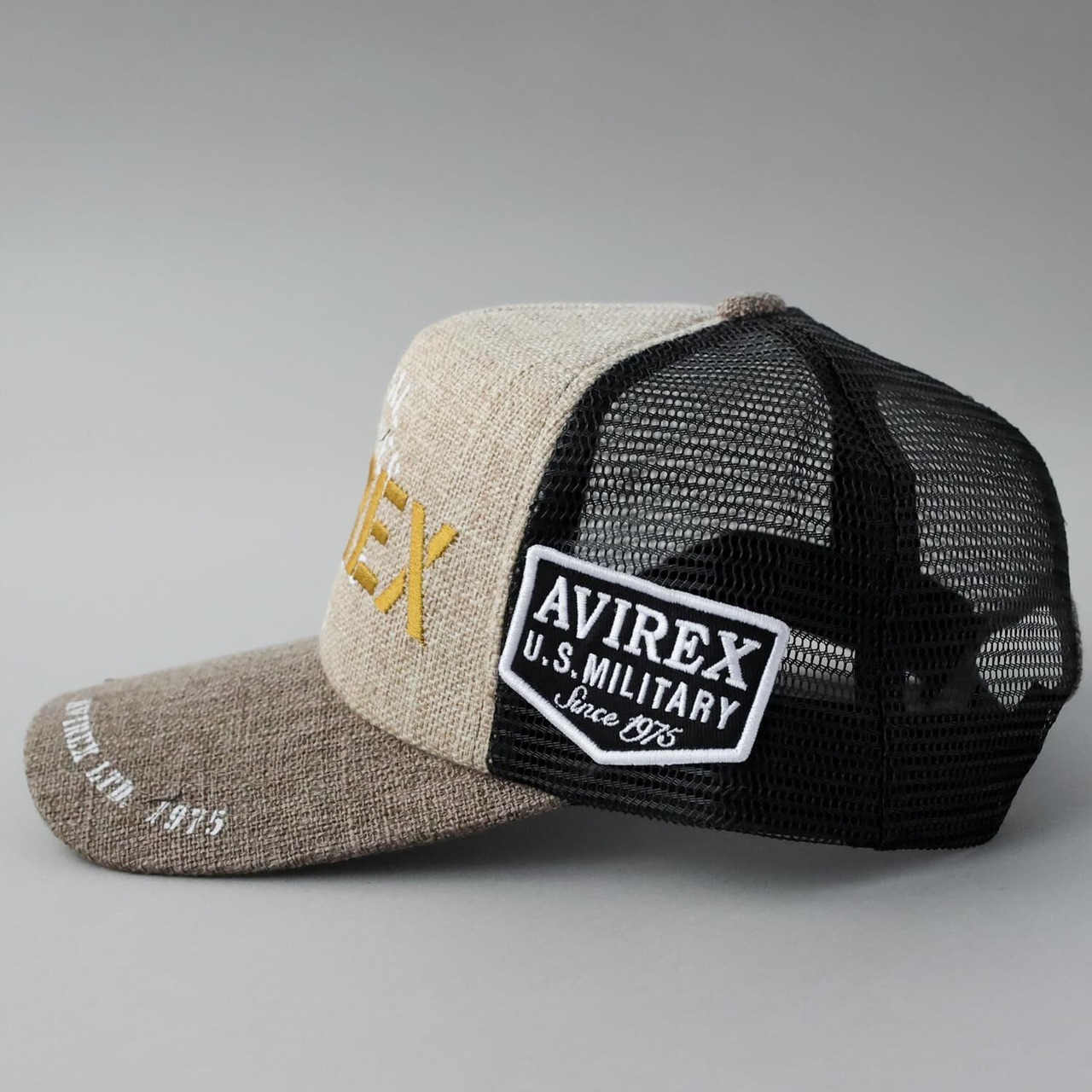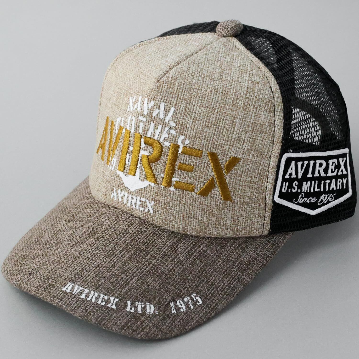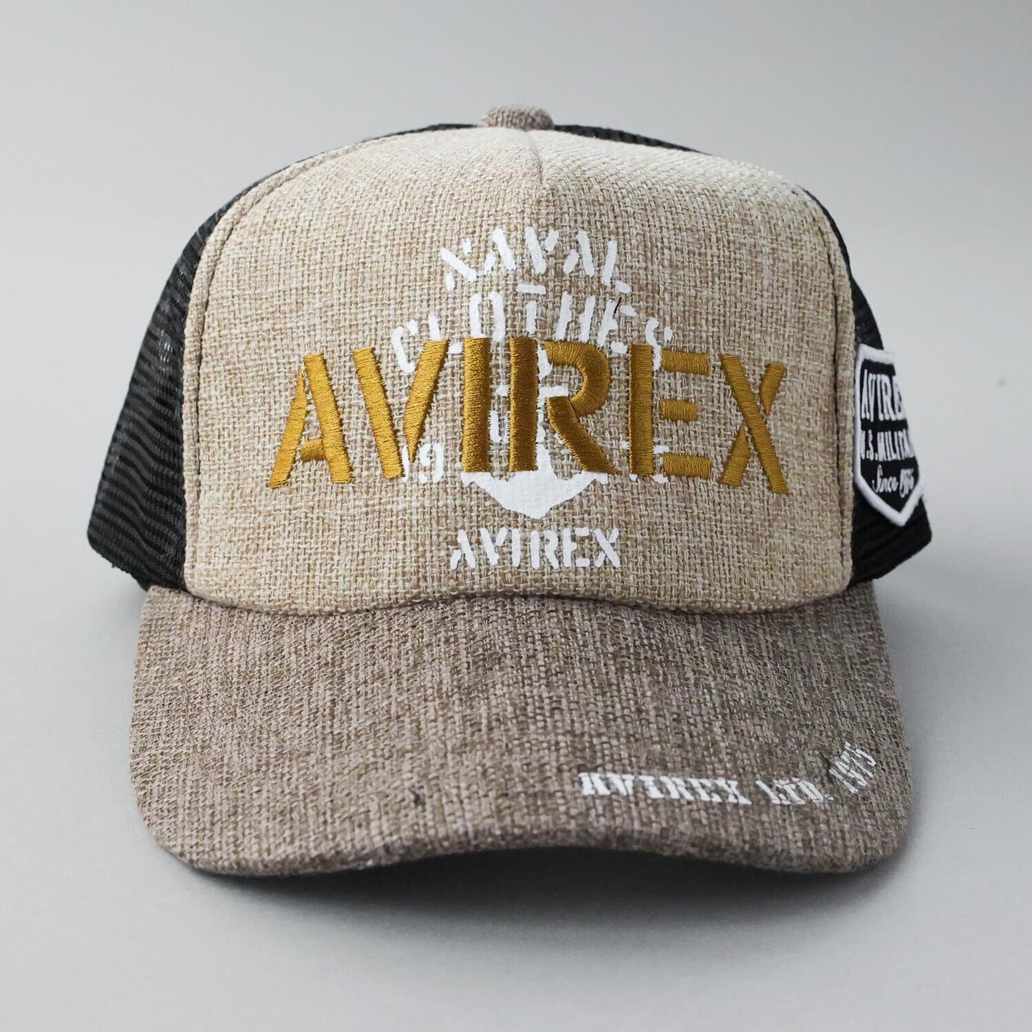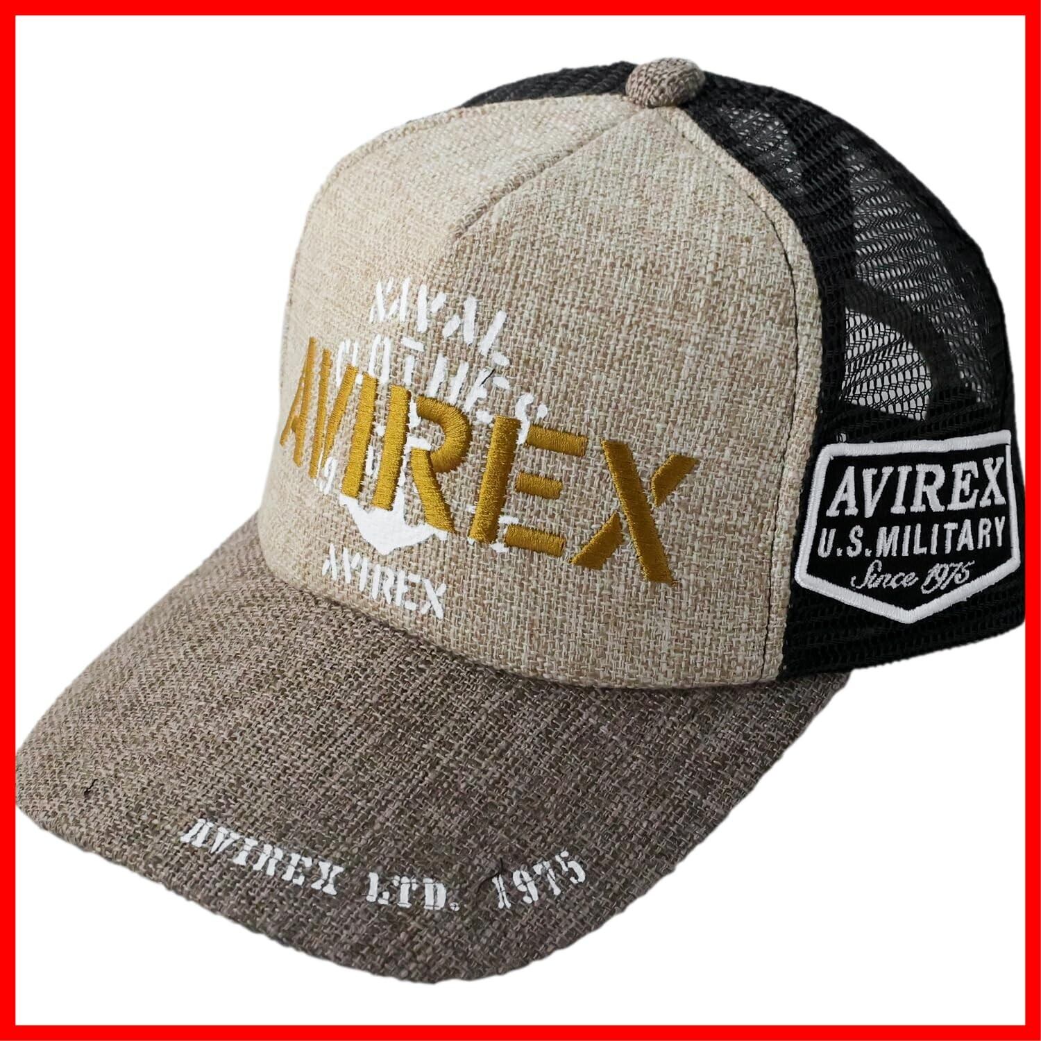 [Avirex] [アヴィレックス] スタンダード ミリタリー メッシュキャップ 帽子 XL LL 大きいサイズ キャップ ジュート デニム メンズ 黒 深め 春 夏 ビッグサイズ アメカジ ベースボールキャップ ロゴ JUTEベージュ XL