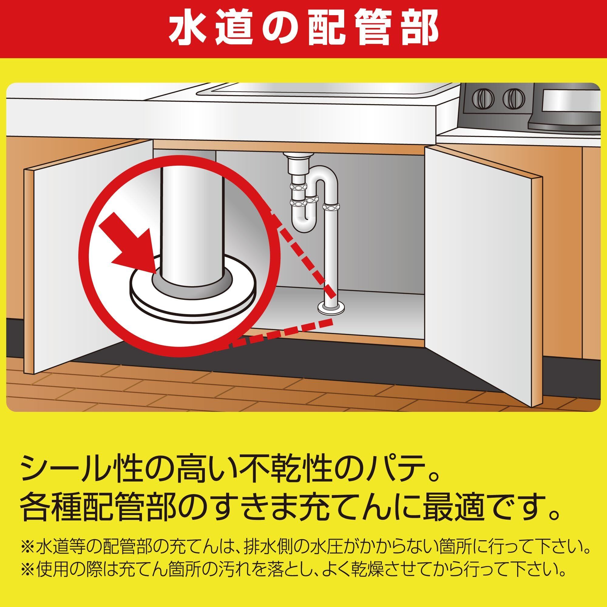 用途:クーラー配管の壁穴・流し台の排水管の取付穴の隙間等の充てん