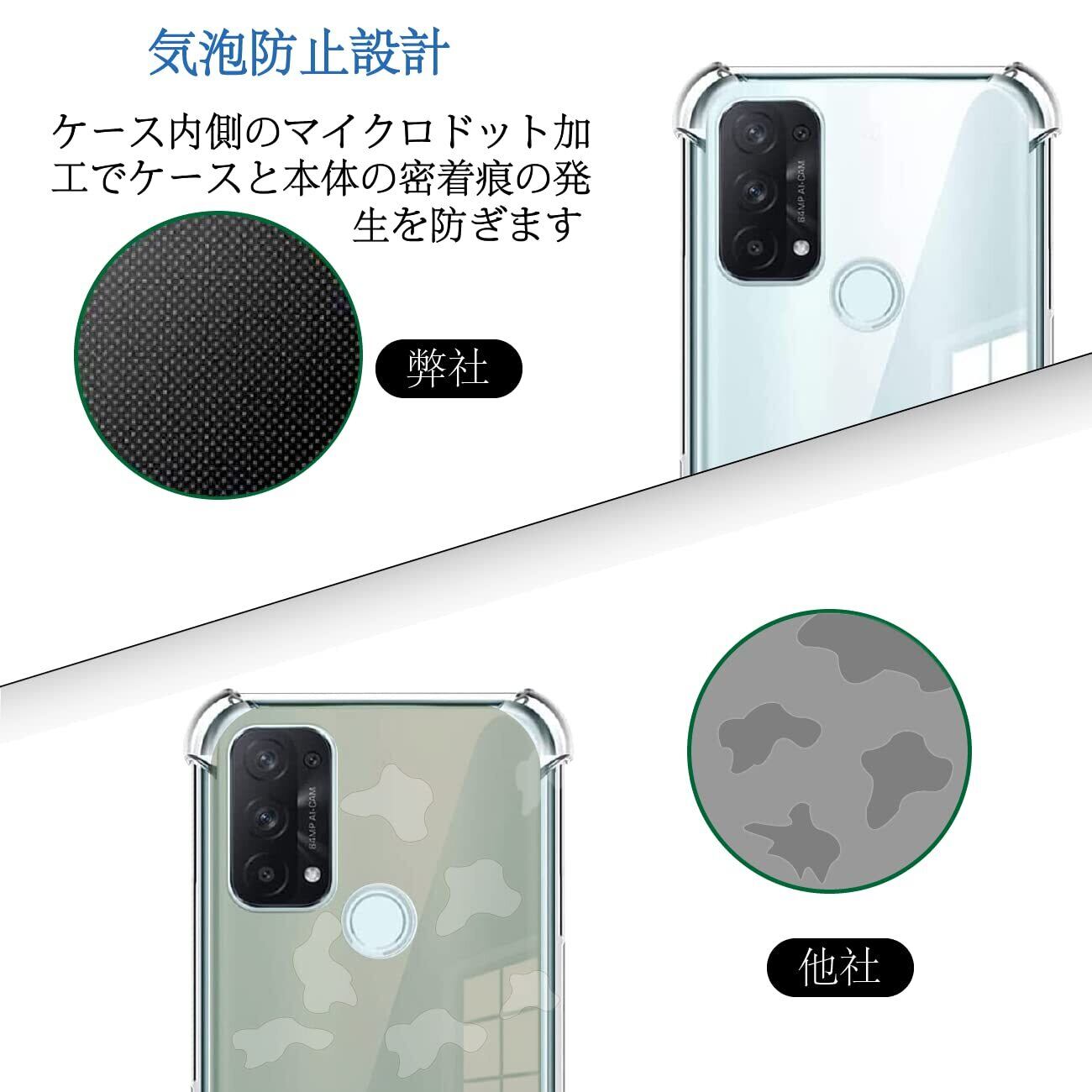 【軍事レベル落下保護】 落下時の衝撃を出来る限り緩衝出来るよう、四隅で衝撃を吸収する「エアクッションテクノロジー」を採用。四つ角部分がエアクッション構造となり、本体が落下しても衝撃を和らげしっかり守ります。携帯電話の曲線に従って高低差設計です、カメラレンズより0.8mm高めで、外部と直接接触の傷つきを避けます、本体の薄さを維持しつつ、カメラレンズもしっかり保護出来る高さで設計されています。