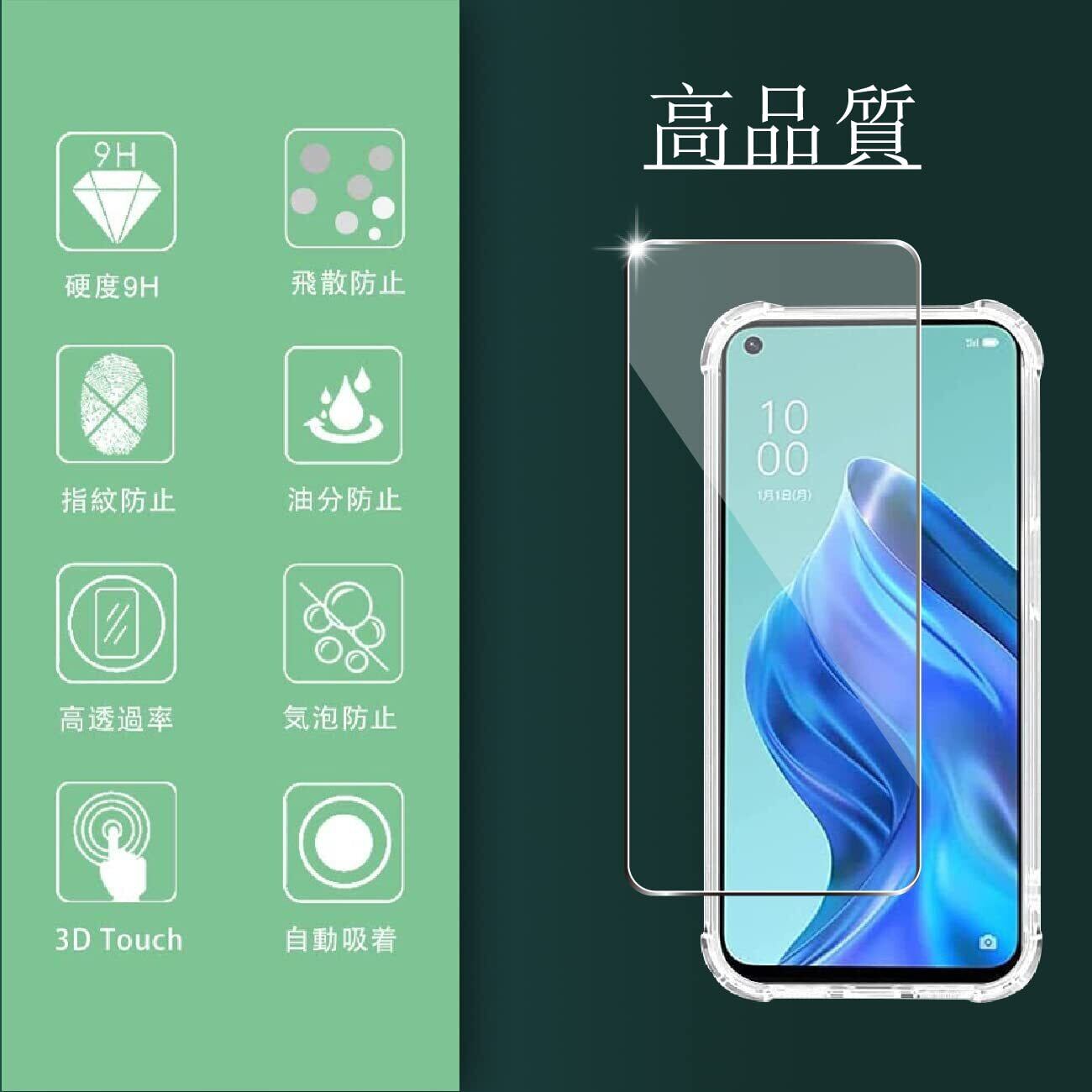 Wekrsu 対応 OPPO Reno5 A 用の ケース + ガラスフィルム 柔軟 TPU カバー 全透明 散熱加工 黄変しにくい 日本旭硝子製 フィルム 強化ガラス 硬度9H 高透過率 飛散防止 [ 全面保護カバー 耐衝撃 落下防止 すり傷防止 薄型 軽量 携帯便利 ] 指紋防止 気泡ゼロ 自動吸着 貼り付け簡単WEOR5ATM
