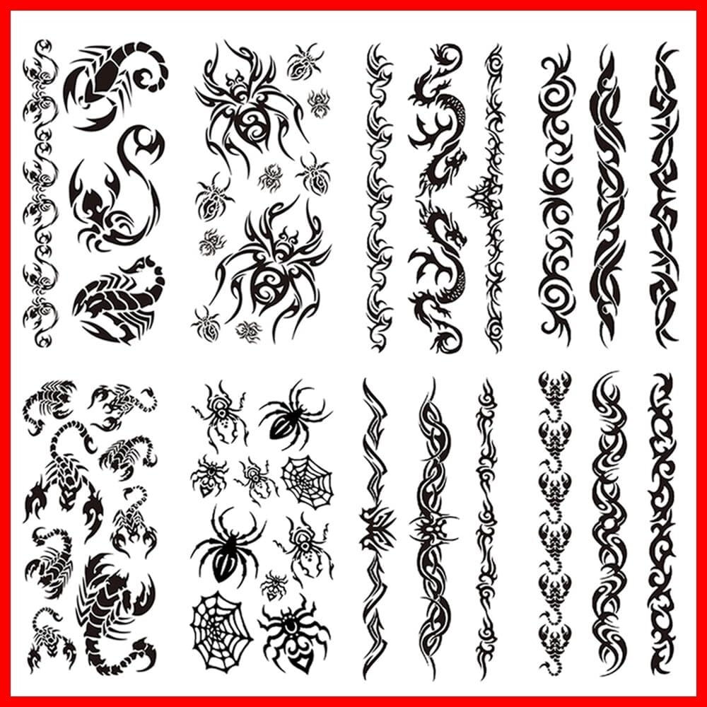 Yesallwas タトゥーシール トライバル 8枚セット 入れ墨シール 蠍 さそり サソリ ドラゴン 蜘蛛 くも タトゥー 刺青シール ボディーシール メンズ レディース 刺青シール 防水 腕、足に簡単貼る 9X19CM