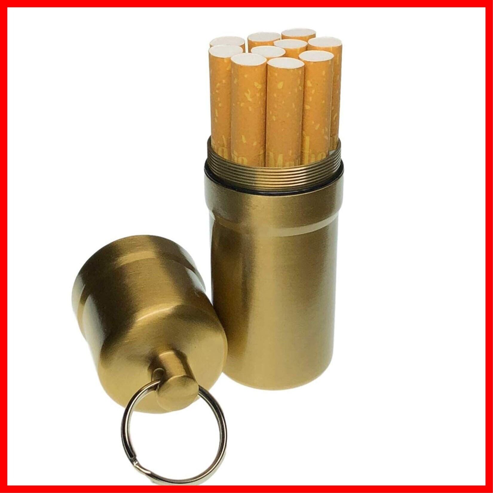 cobalt planet シガレットケース タバコ10本収納 携帯灰皿 防水 キーホルダー 合金 アウトドア 耐湿防圧 (ゴールド)