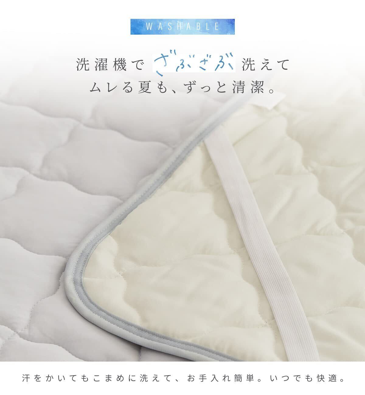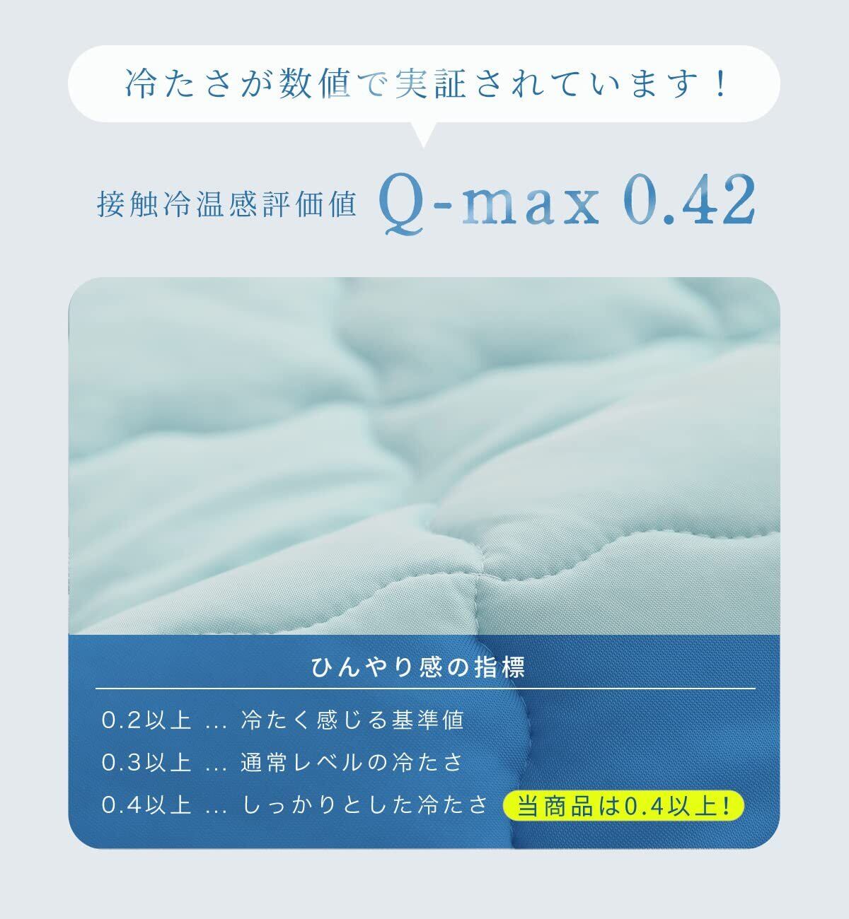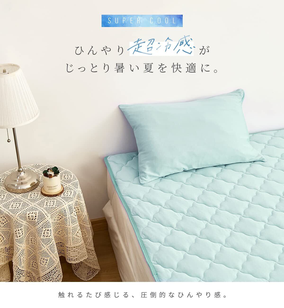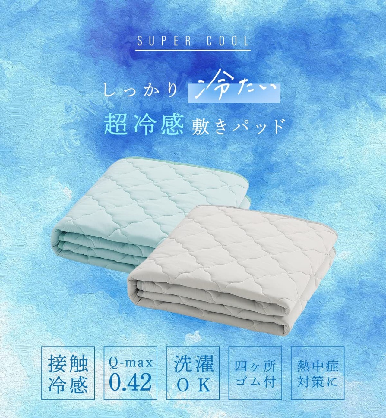 【超冷感】触った瞬間すぐわかるほどの冷たさ。Q-max0.42の超冷感仕様の敷きパッドです。暑がりさんには特におすすめです。寝返りのたびに、ひんやりと冷たく、冷房との併用でさらにひんやり感がUPし快適にお使いいただけます。