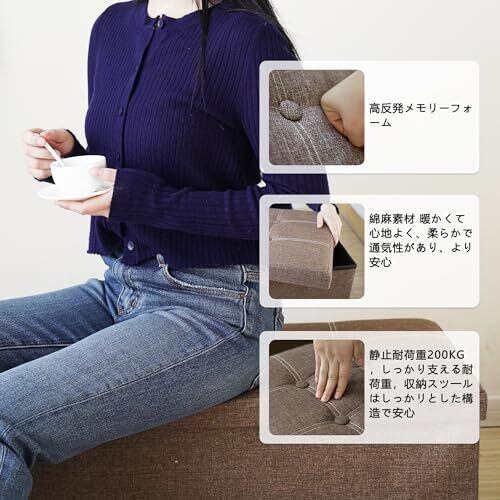 安心!余裕の耐荷重 座面と側面にはMDF(中質繊維板)を使用。安定した材質で強度を保ちます。 材質:綿麻、MDF、通気性がよく、においも気になりません ご注意ご使用のモニター環境により実物と色味が異なる場合がございます。