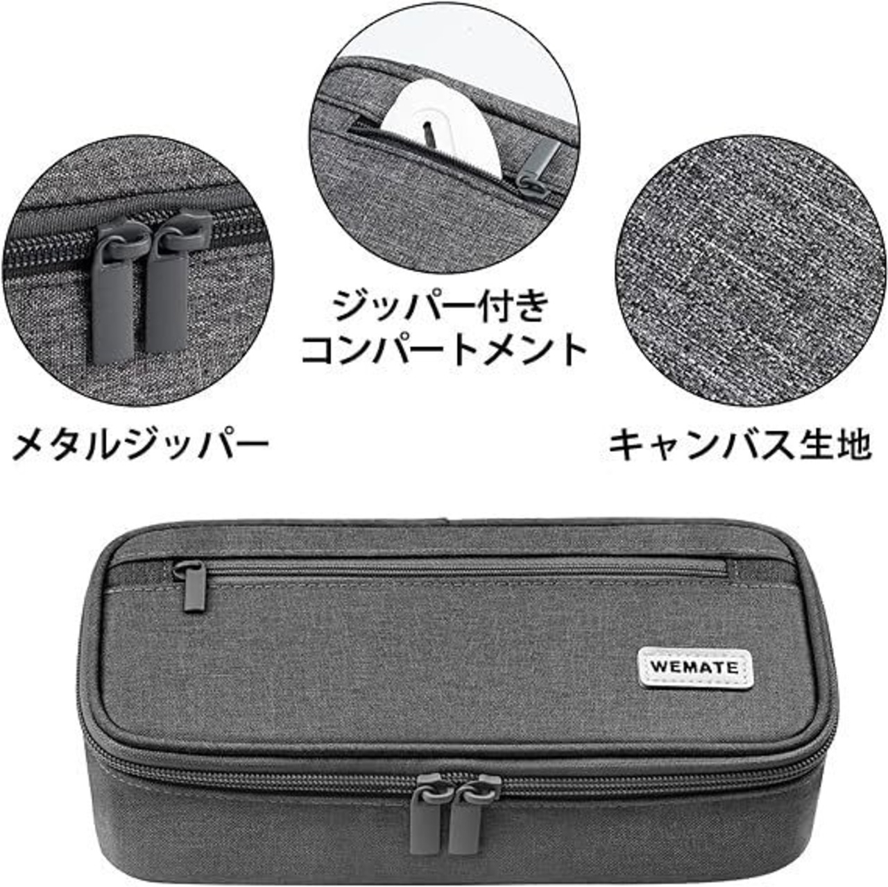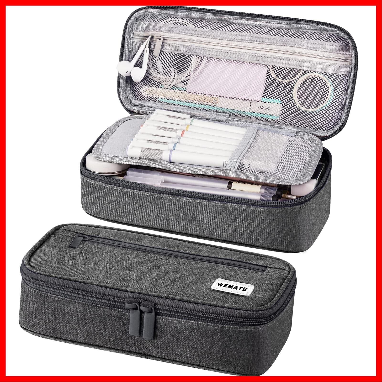 WEMATEペンケース 大容量 筆箱 横開き 2層 シンプル 多機能 おしゃれ-ジッパー ペンホルダー付き 強力な分類と収納力 ガジェットポーチ 収納ポーチ 旅行 出張 女の子、男の子、大人、小学生、高校生、大学生用 ダークグレー