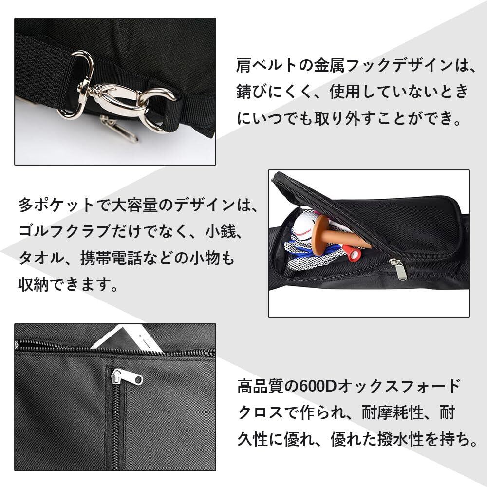 【便利なデザイン】このゴルフクラブバッグには便利なサイドポケットや取り外し可能なショルダーストラップが付いており、ゴルフボール、ティ、グローブなどのアクセサリーを収納し取り出すのが簡単です。サイドハンドルデザインも、バッグを持ち上げたり下ろしたりするのが簡単になります。これらのヒューマンサイズなデザインにより、いつでもすぐに必要な装備を使用できるため、ゴルフ練習の効率と便利さが向上します。