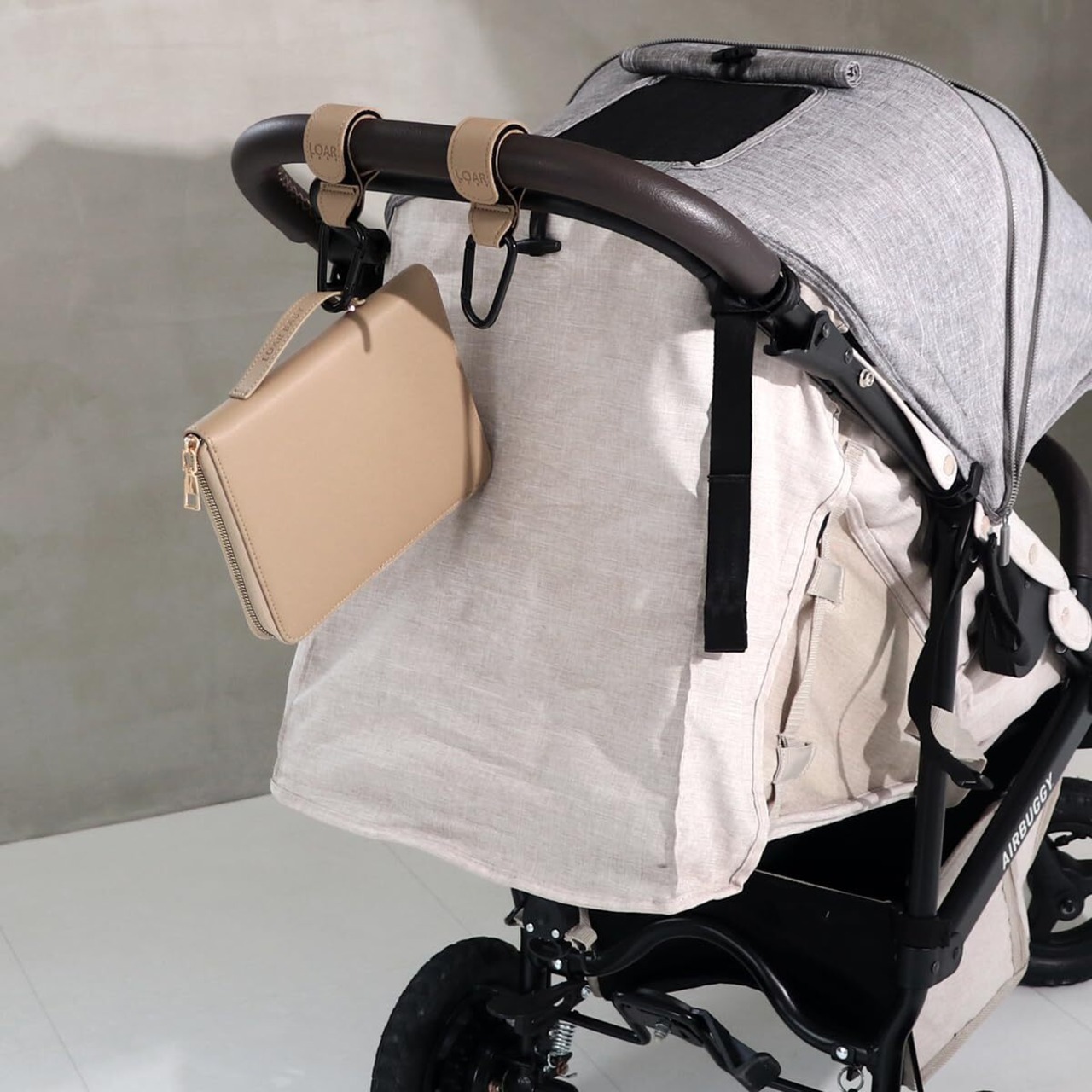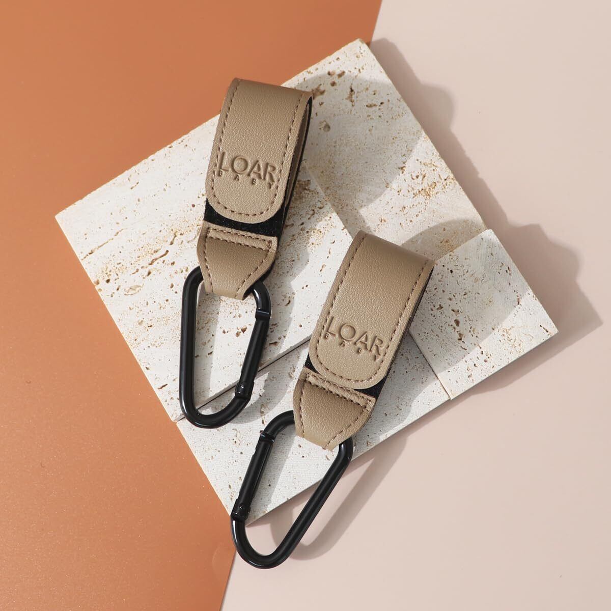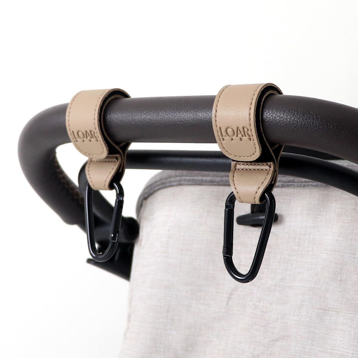 LOAR BABY(ロアベビー) ベビーカーフック カラビナ ベビーカーグッズ ベビーカー荷物掛け 2個セット カラビナフック おしゃれ 合皮 ギフト プレゼント (グレージュ)