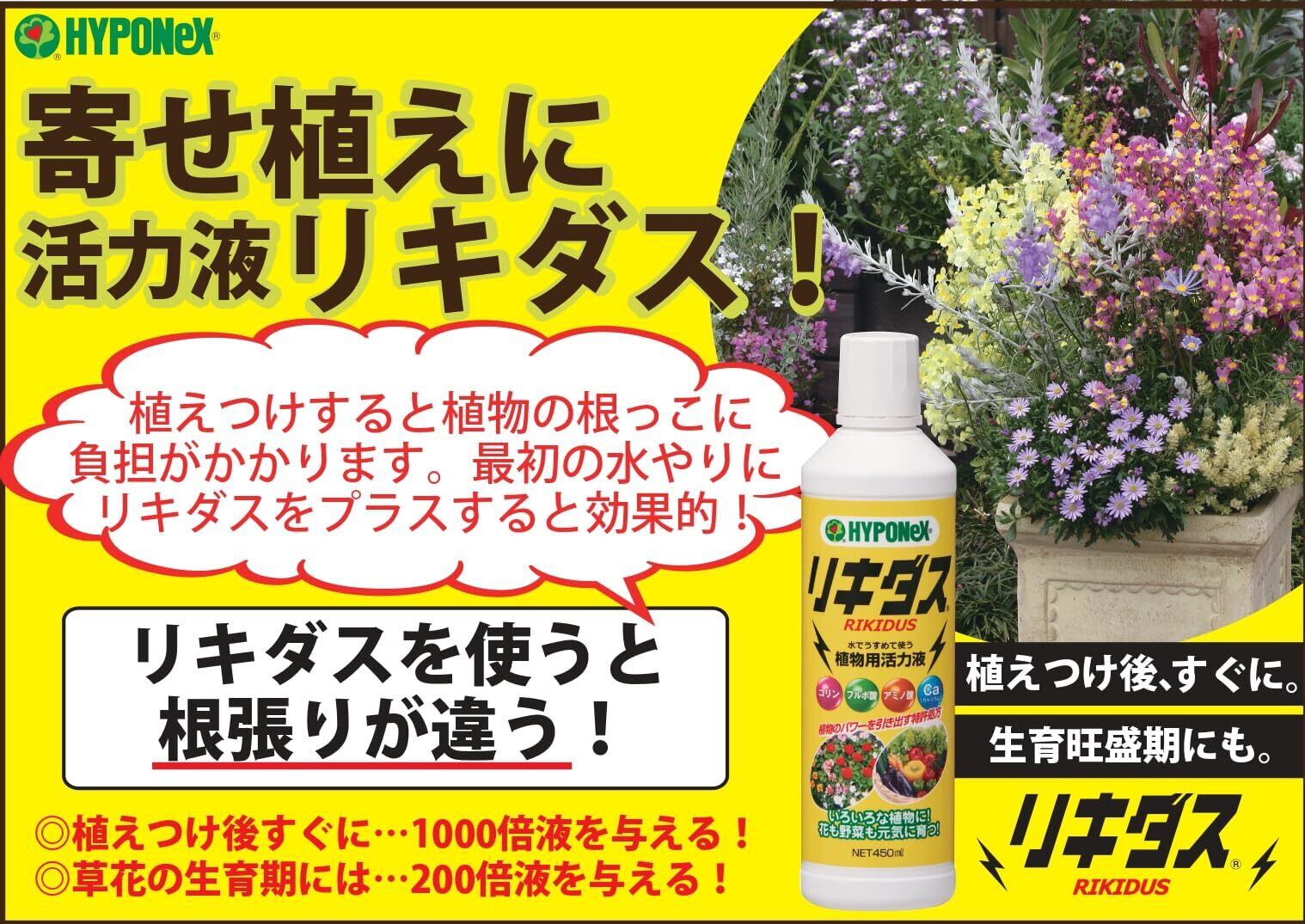 適用植物:野菜・草花・花木・観葉植物・バラ・鉢花・洋ラン・東洋ラン・サボテン・盆栽など