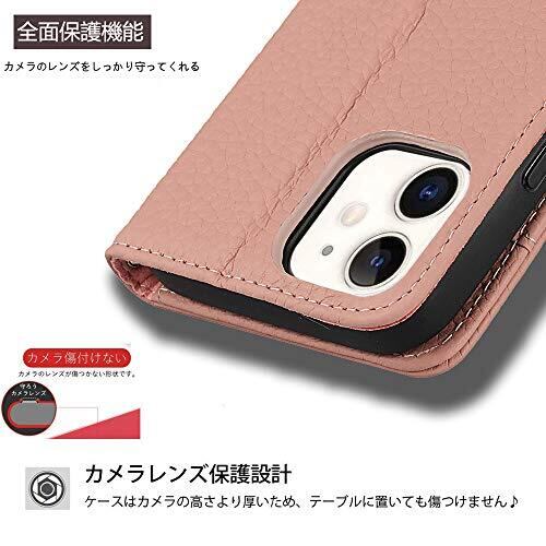 iPhone 12 mini 5.4 (2020) 縄掛け ケース iPhone 12 mini 本革 ケースケース iPhone 12 mini カード収納 iPhone 12 mini 5.4 手帳型 カバー iPhone 12 mini カバー iPhone 12 mini 本革 本皮 牛革 レザー iPhone 12 mini 手帳型ケース Cavor iPhone 12 mini 5.4 携帯 カバー、 iPhone 12 mini 5.4 財布型 カバー ライチ紋真皮 手作り 付きの専属ストラップ同梱なので タンド機能 軽量 耐久性 便利 多機能 落下保護 【ピンク】