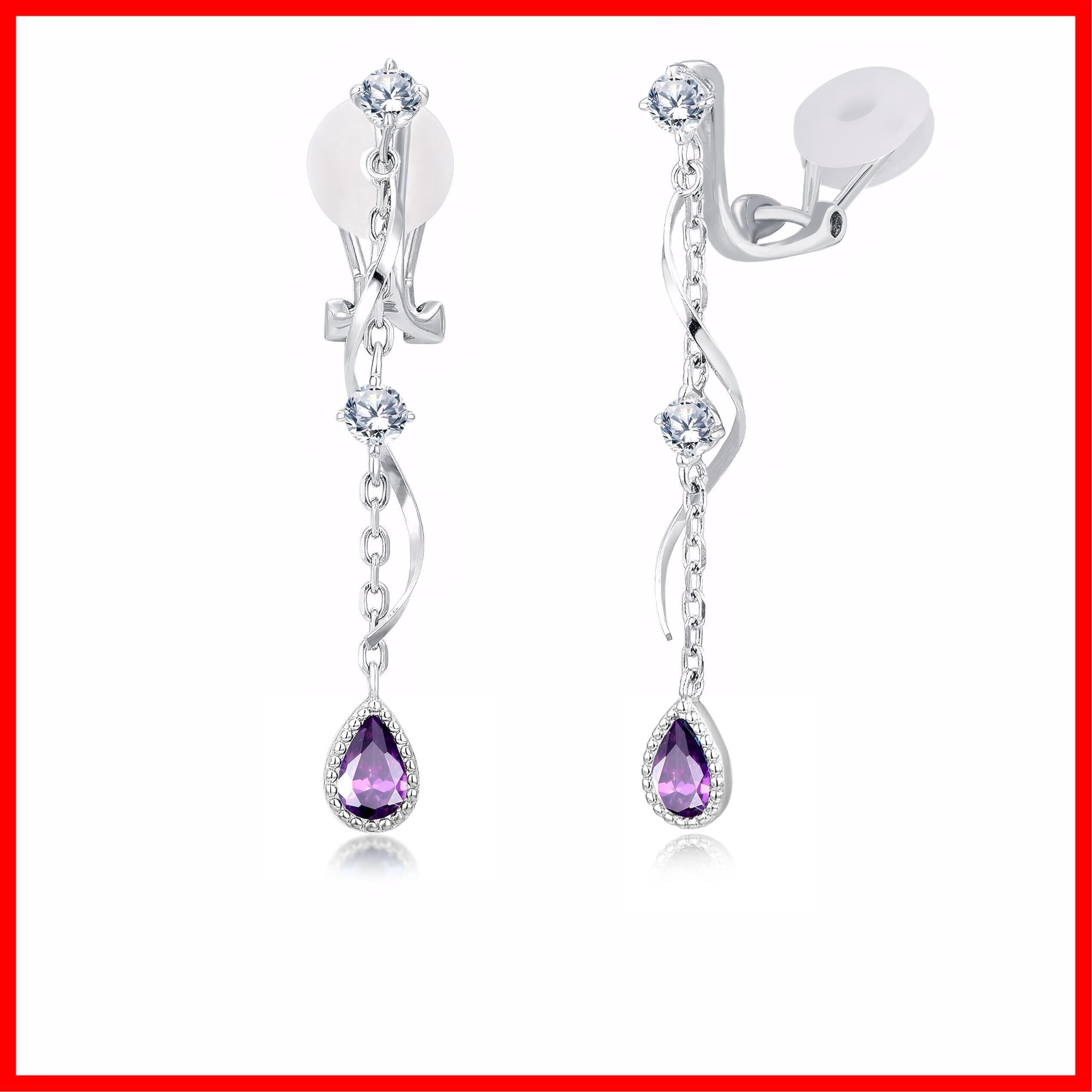 FH.bird アメジスト イヤリング レディース 揺れる 大人 金属アレルギー対応 ノンホールピアス 2月誕生石 記念日 パーティー 20代 30代 40代 プレゼント