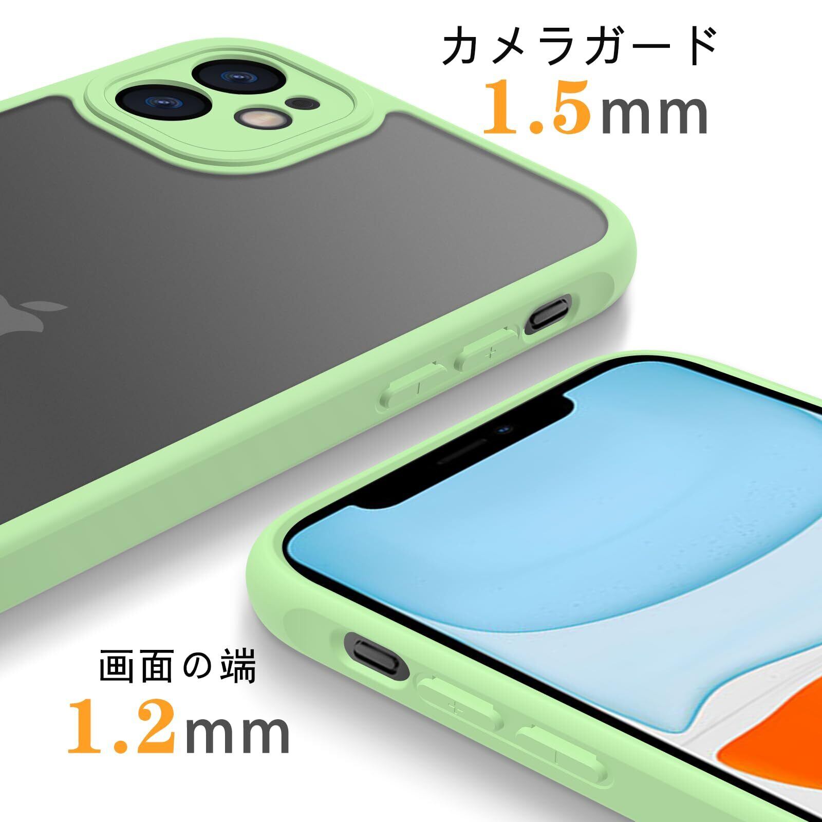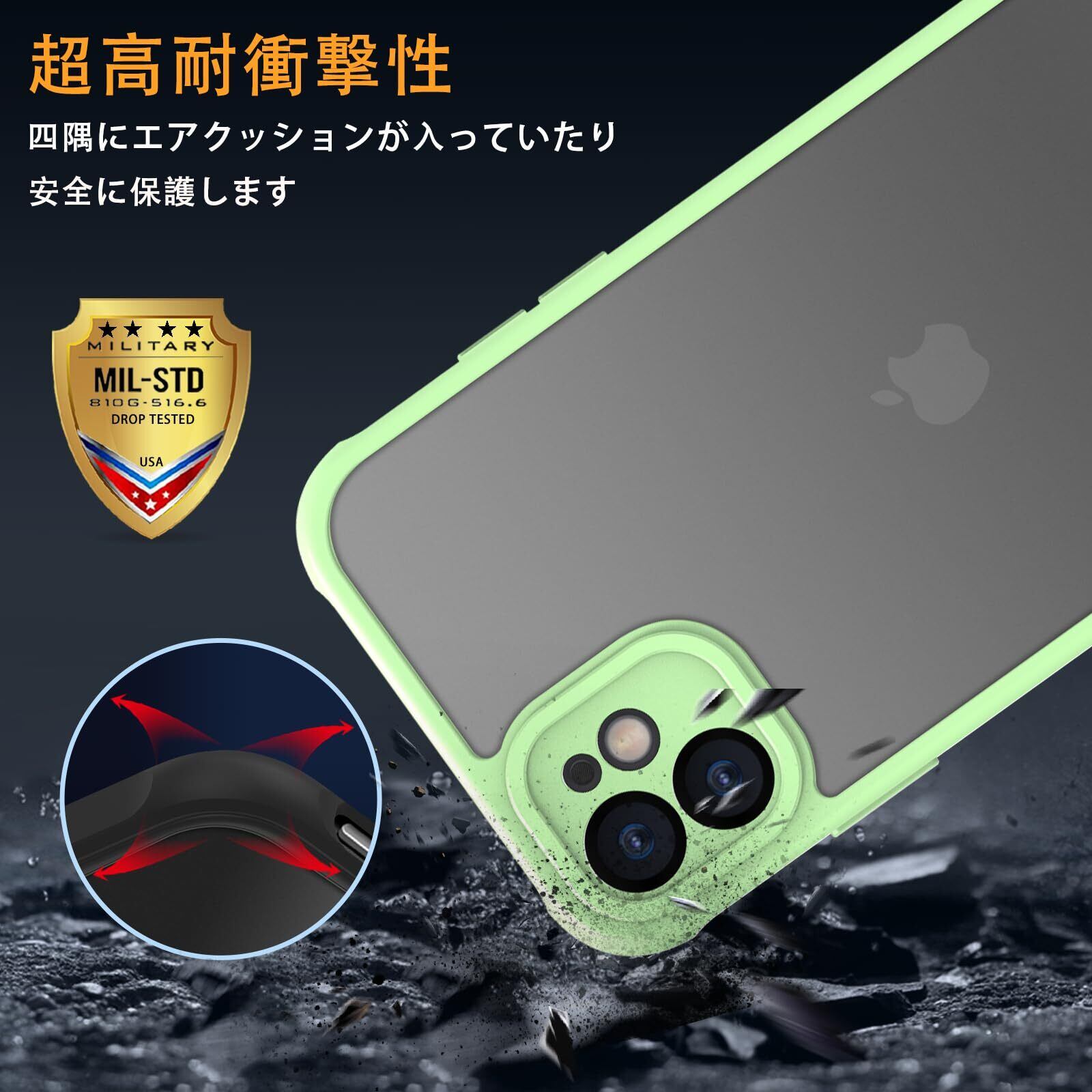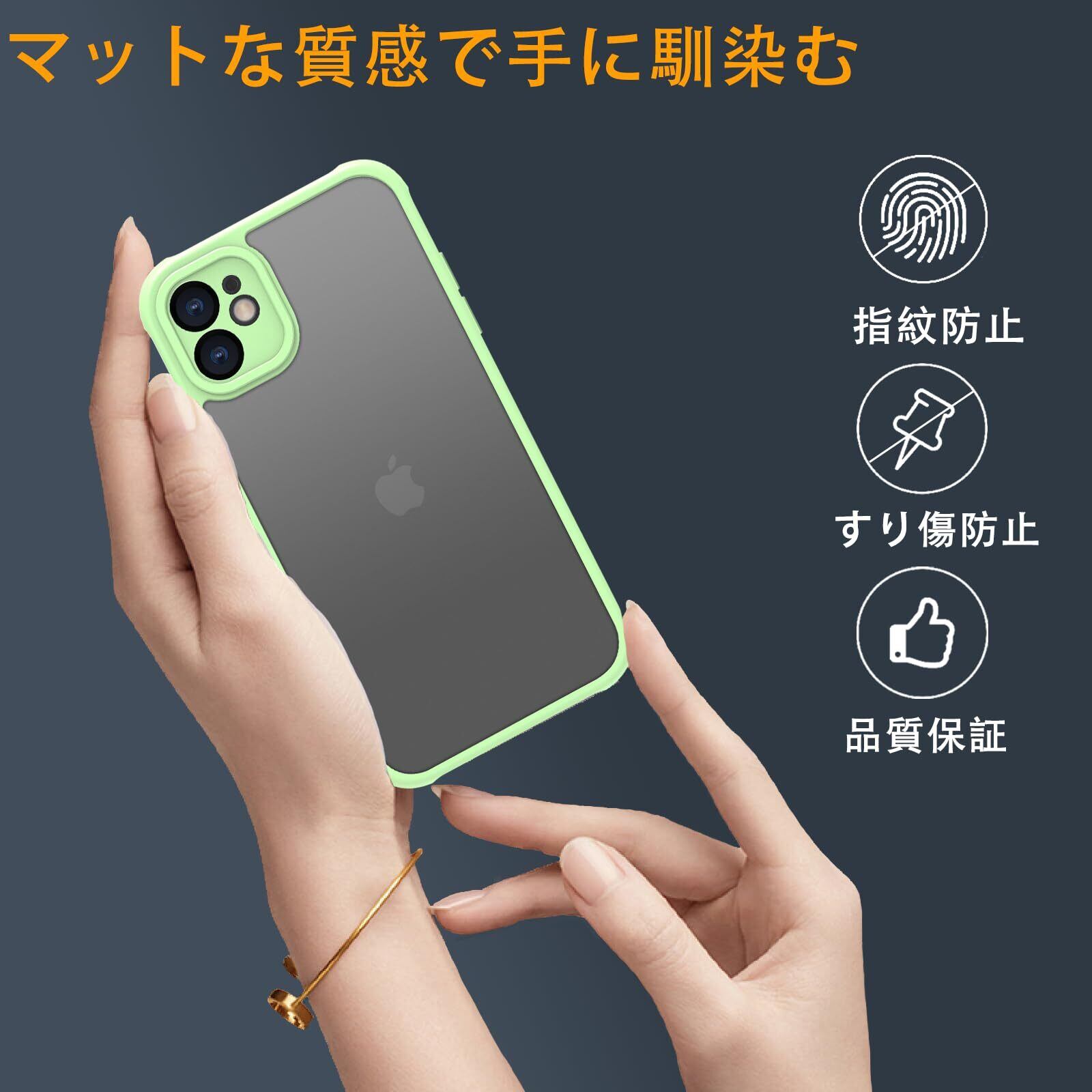 iPhone 11 ケース 背面マット 半透明 耐衝撃 iPhone 11 ケース 指紋防止 アイフォン 11 カバー 米軍MIL規格 iPhone 11 用 ケース カバー 黄変防止 スマホケース iphone 11 6.1インチ 対応 PinLiSheng(グリーン iPhone11)