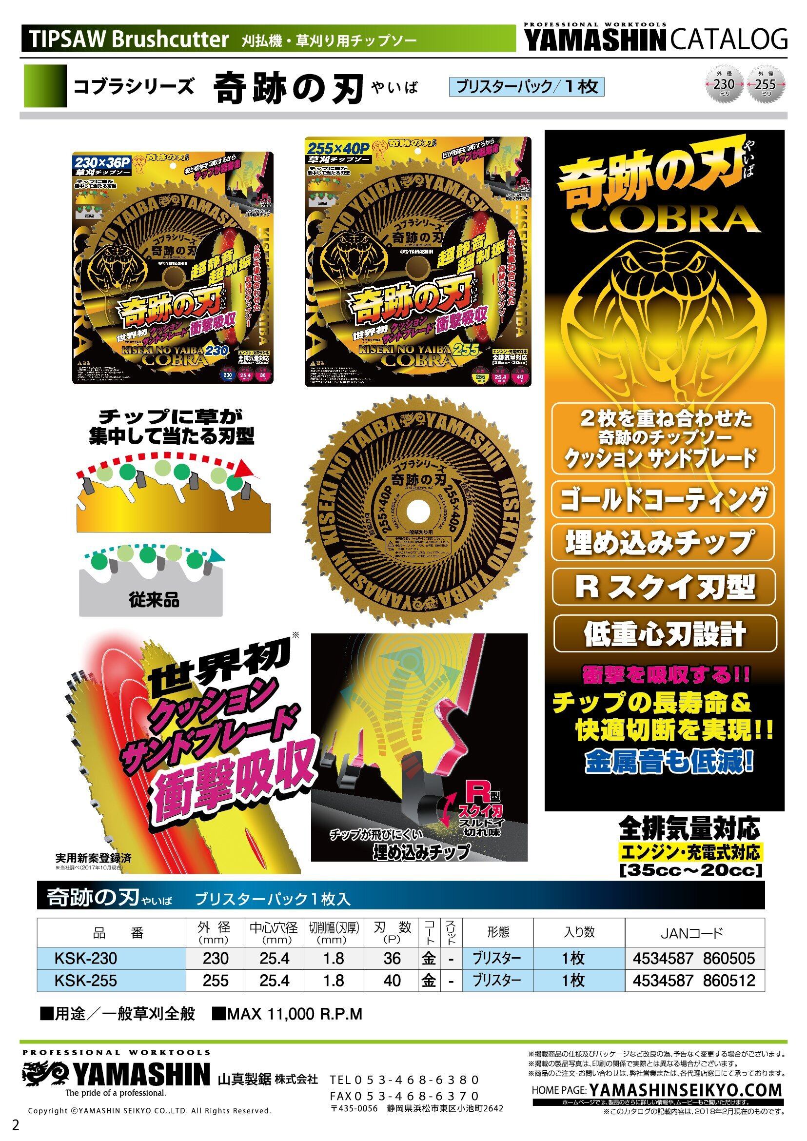 山真製鋸(YAMASHIN) 金属 草刈りチップソー コブラシリーズ 奇跡の刃 255mm KSK-255 ・超制振