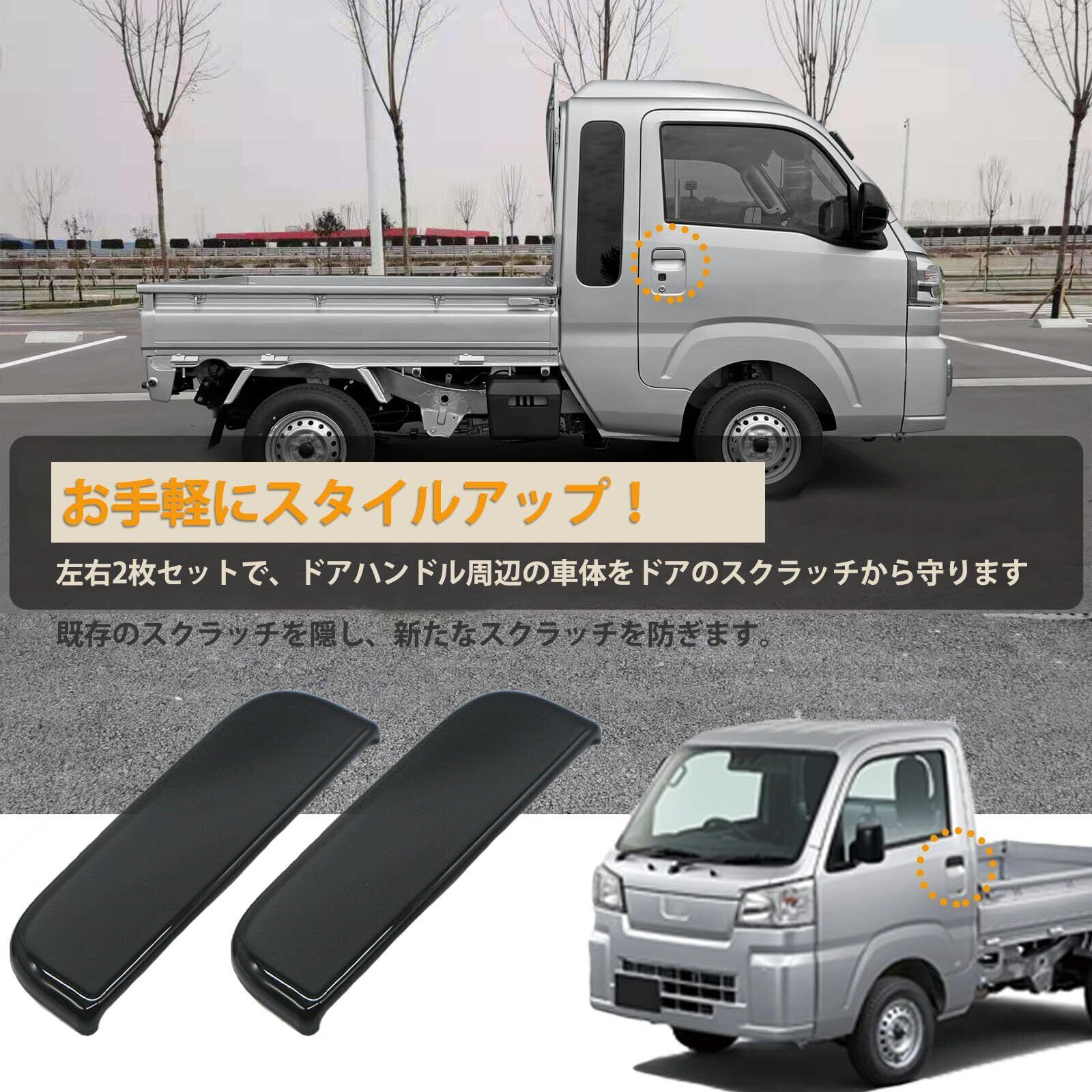 Kasinfly ハイゼットトラック用 ドアハンドル プロテクター 傷防止 サイドドアハンドルカバー 傷隠し ドアノブ ガード 軽トラック ハイゼット専用 S500P S510P 室外ドアパーツバー 2枚入れ ブラック