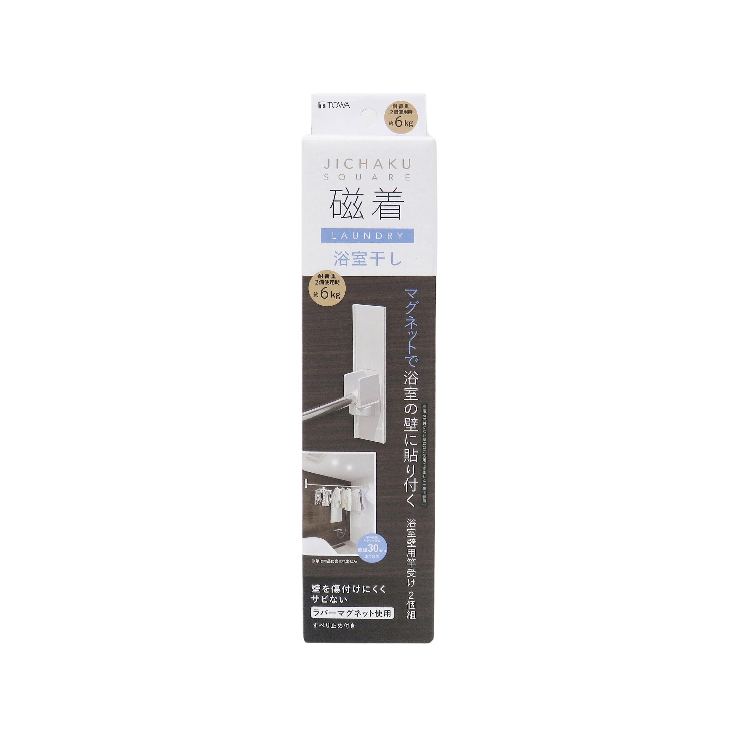 東和産業 マグネット バスルーム 物干し竿ホルダー 磁着SQ浴室壁用竿受け 2個組 ホワイト 約5.9×6×25.5cm 浴室干し サビない 浴室乾燥機