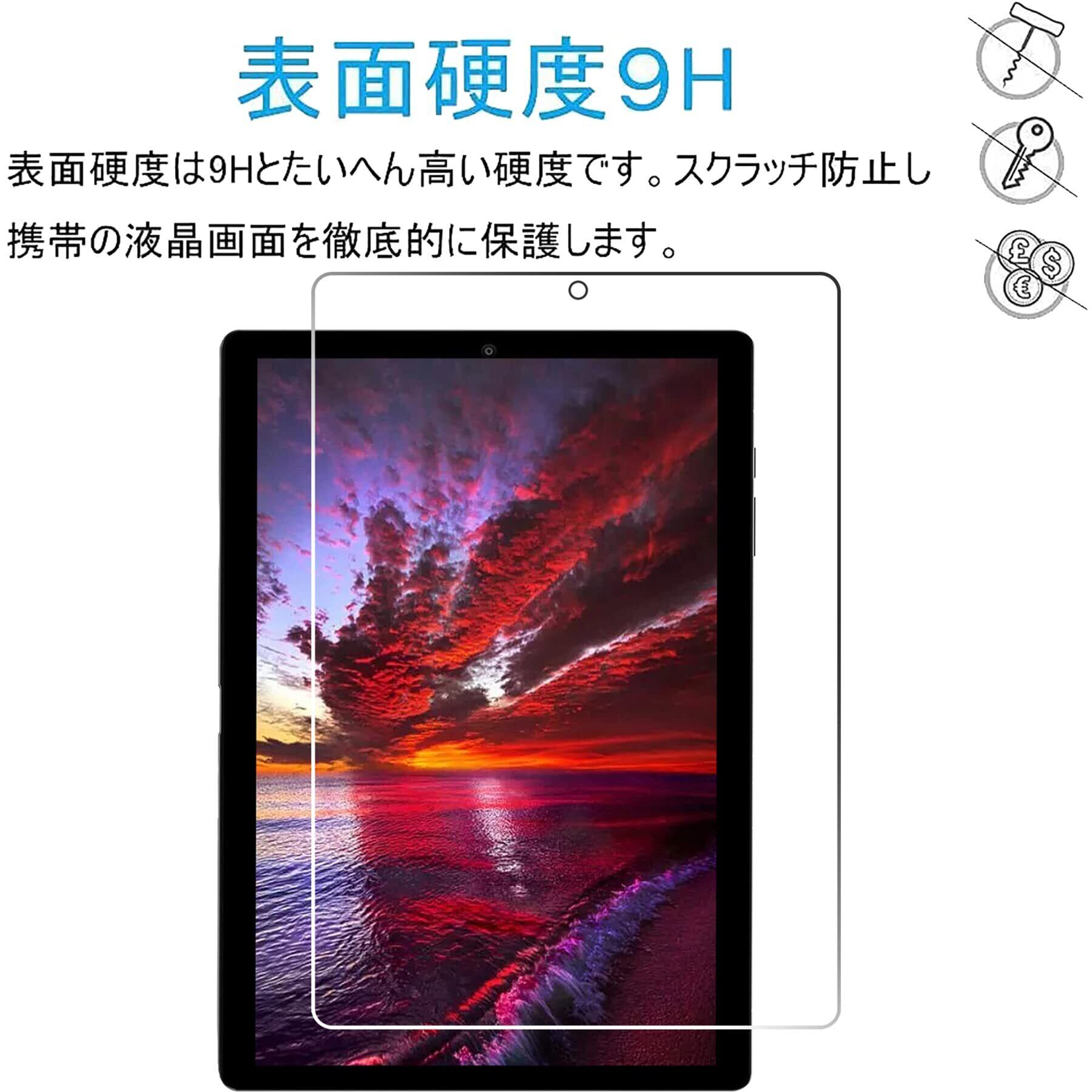 【高透過率】透過率高 超えのガラスフィルムで、液晶画面の鮮明度を損なうことなく、画面本来の美しさをそのまま表現します。高透明度 ガラスフィルムで、貼っても貼っていないようなクリア感。タブレットの液晶本来の美しさを損わない、絶妙な画面感を実現します。