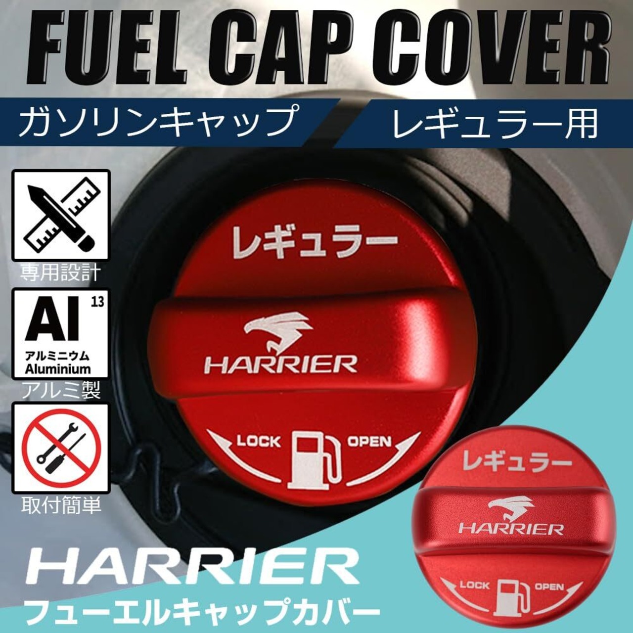 LEXLEYS トヨタ レギュラー仕様 赤 ハリアー 60系 80系 専用設計 フューエルキャップ アルミ製 フューエルリッド ガソリン キャップカバー 給油口 オイルキャップ フューエルタンク