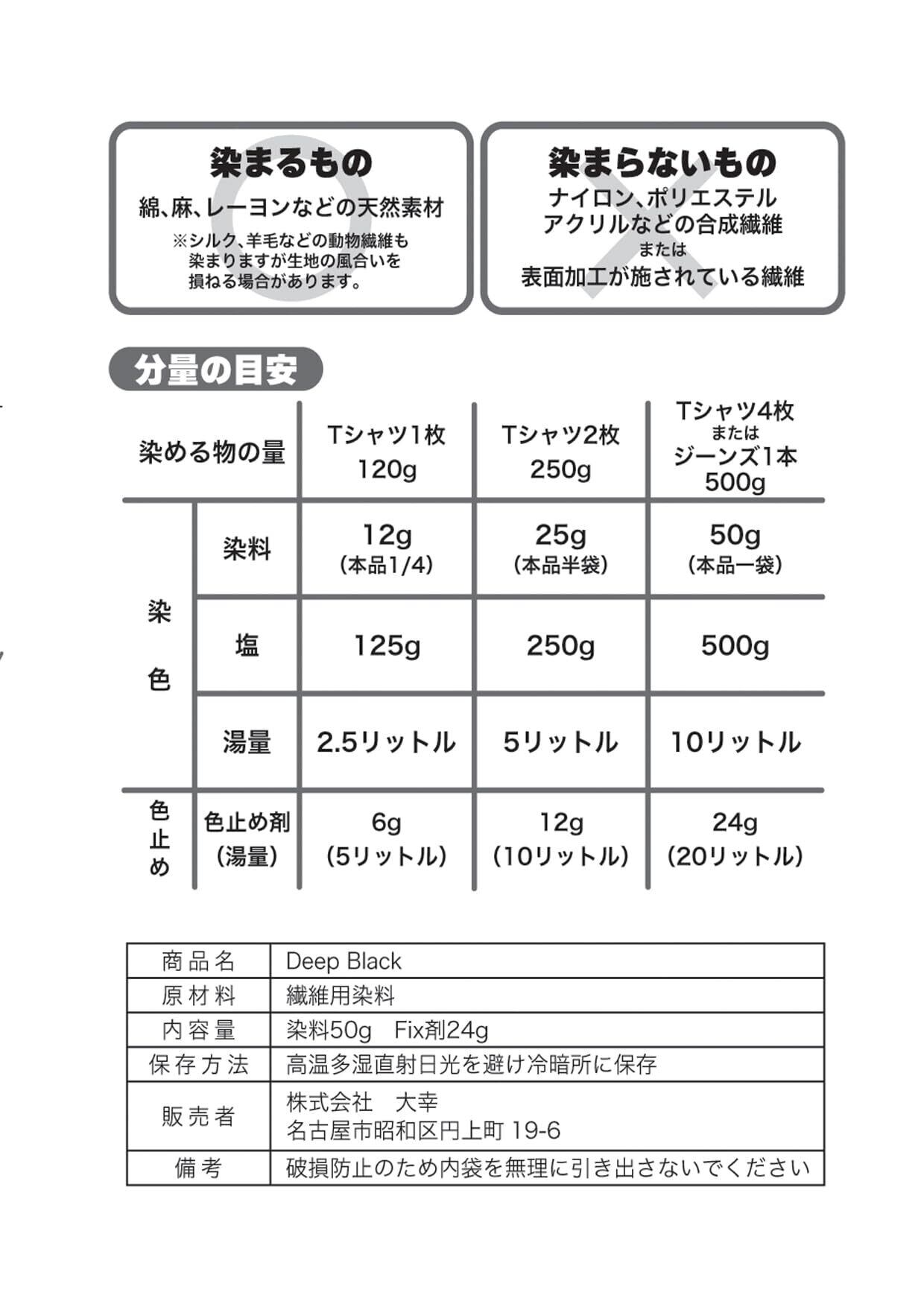 染料 黒 ディープブラック Tシャツ4枚染まる! 50g色止め付き