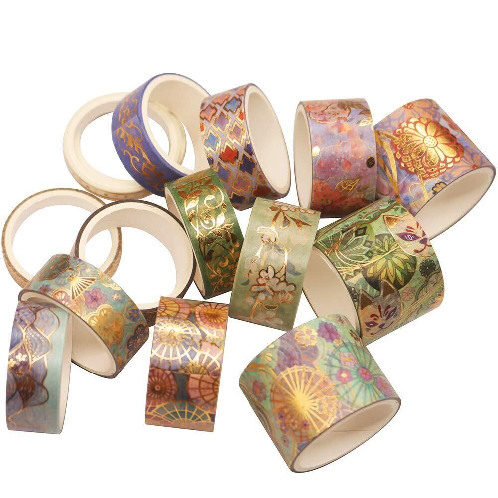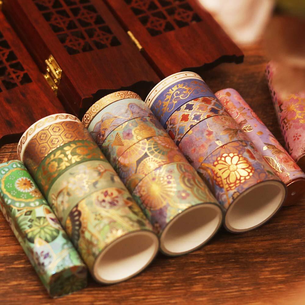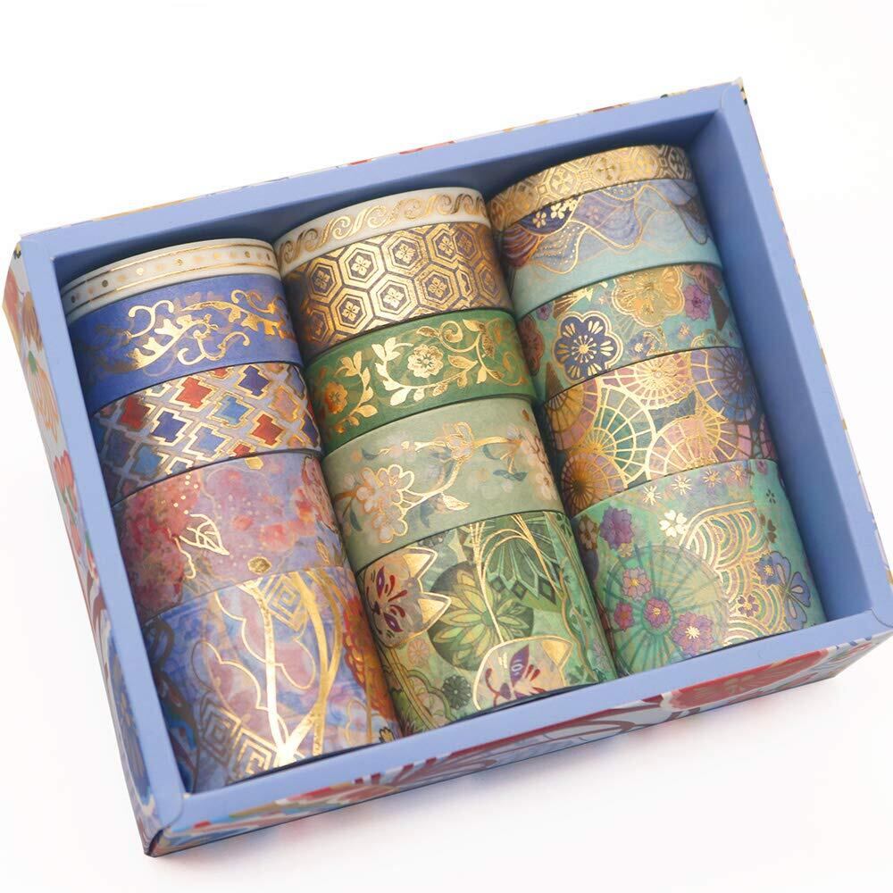 Yubbaex 豪華な刺繍模様 ワシテープ 金箔押し マスキングテープ 広い幅 共15巻 薄いです プレゼント包装、DIY工芸品、ノートの装飾に使える (素晴らしい章)