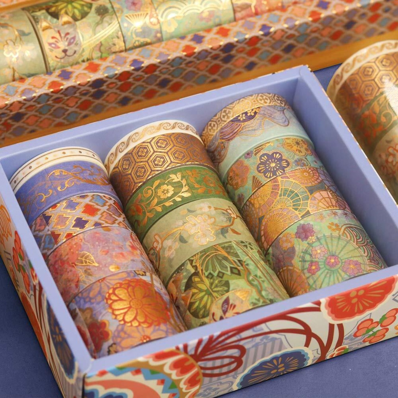 豪華の金花柄:華やかなパレス風の刺繡柄がこの和紙の最大の特徴です。 伝統的な東洋文明からのデザインのインスピレーション、非常に優れたブロンズ加工を通して、これらの装飾テープはゴージャスな美しさを提示します。