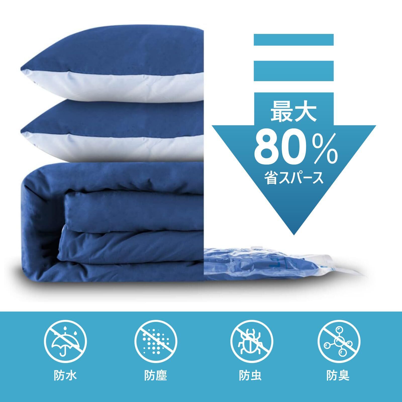 【最大80%の圧縮力で収納効率アップ】 旅行や引っ越し、衣替えの際、通常の荷物量を最大80%まで圧縮可能!これで、今まで諦めていた荷物も楽々収納でき、スーツケースやタンスがすっきり整理できます。