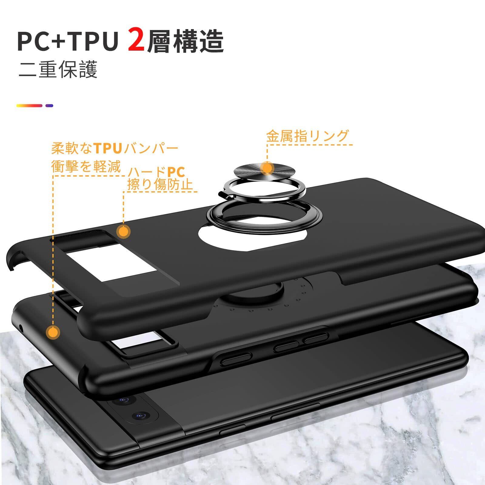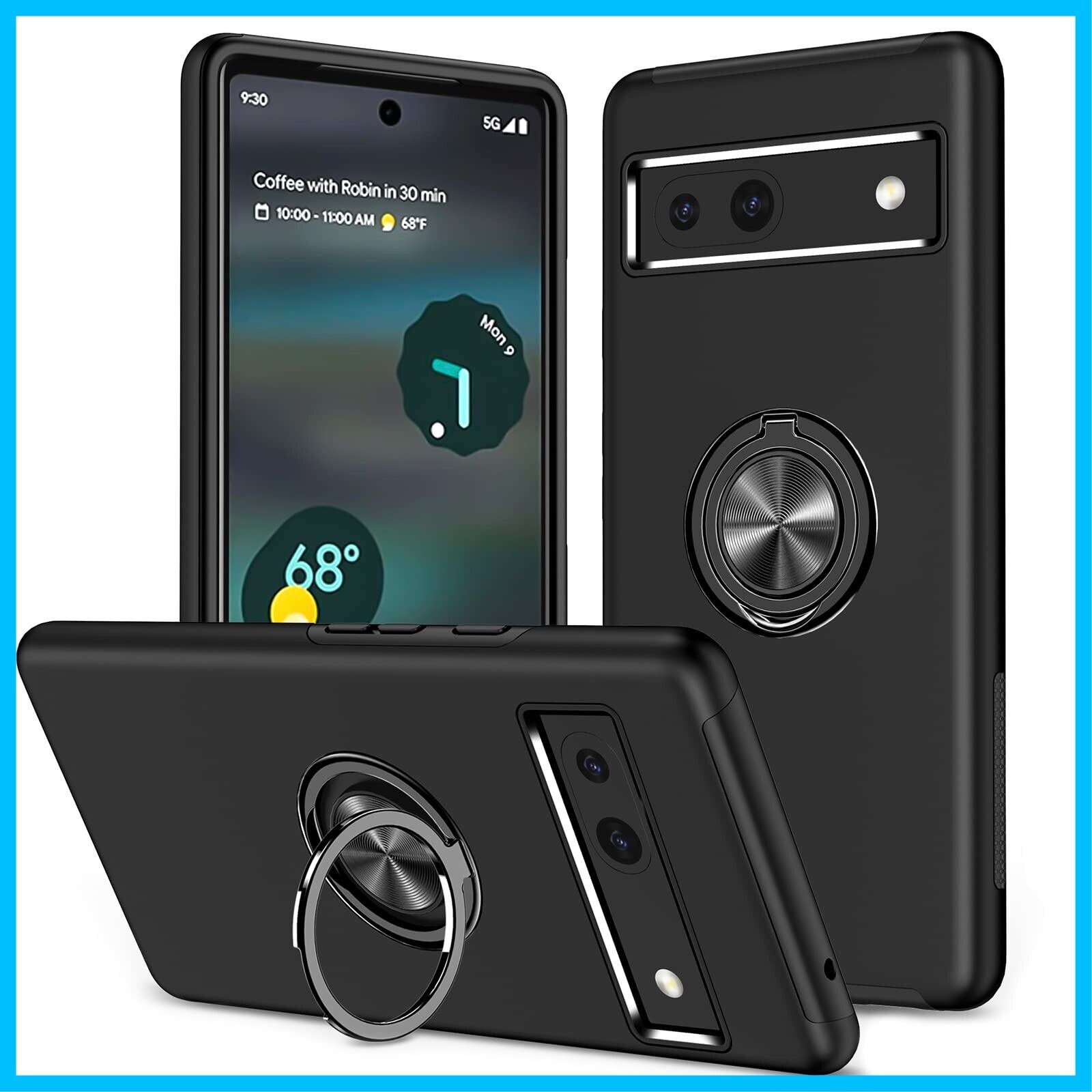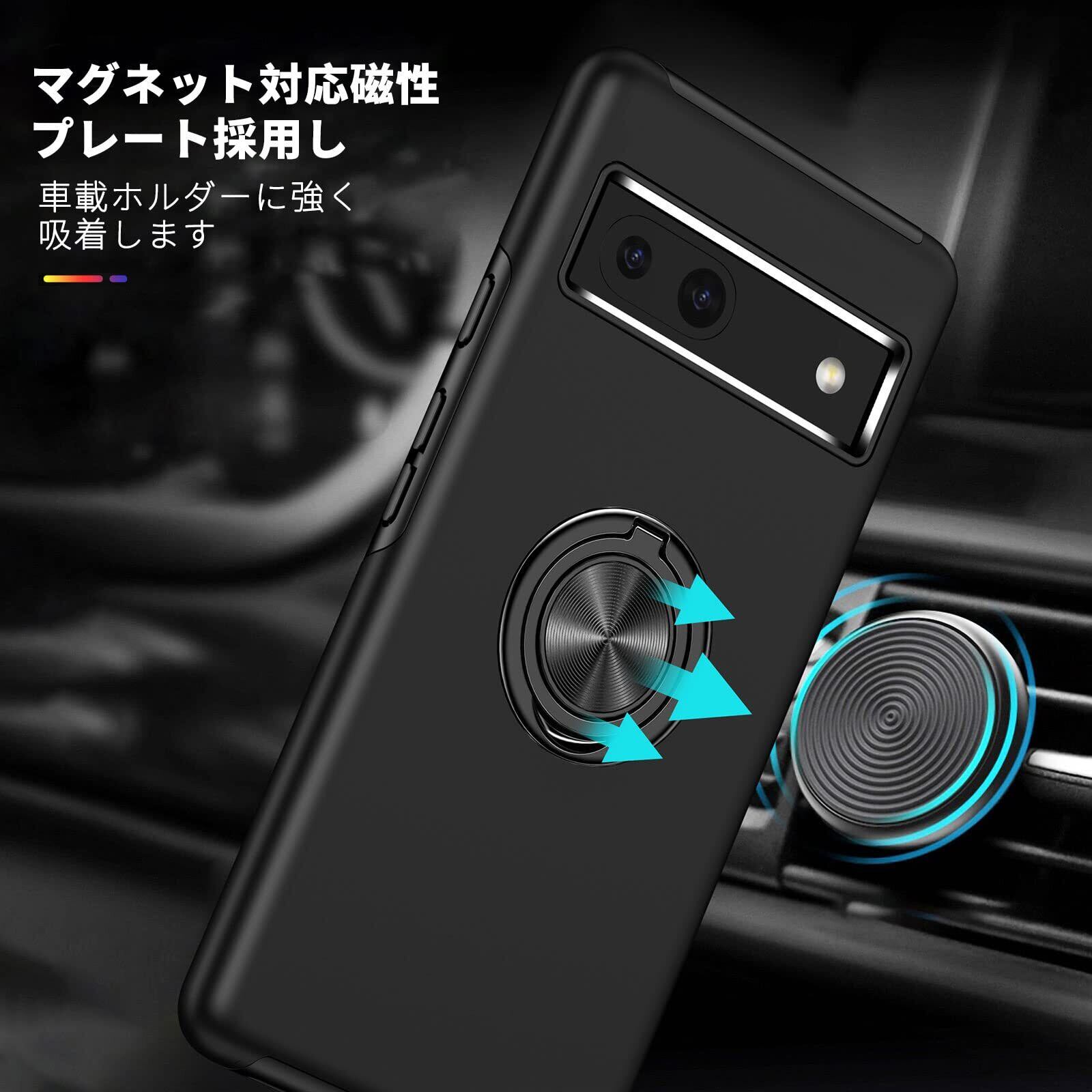 Google Pixel7a ケース リング 耐衝撃 TPU+PC バンパーケース グーグル ピクセル 7a スマホケース 頑丈 スタンド機能 車載ホルダー対応 全面保護 落下防止 防塵 指紋防止 傷防止 衝撃吸収 Google Pixel 7A 用 携帯カバー(ブラック)