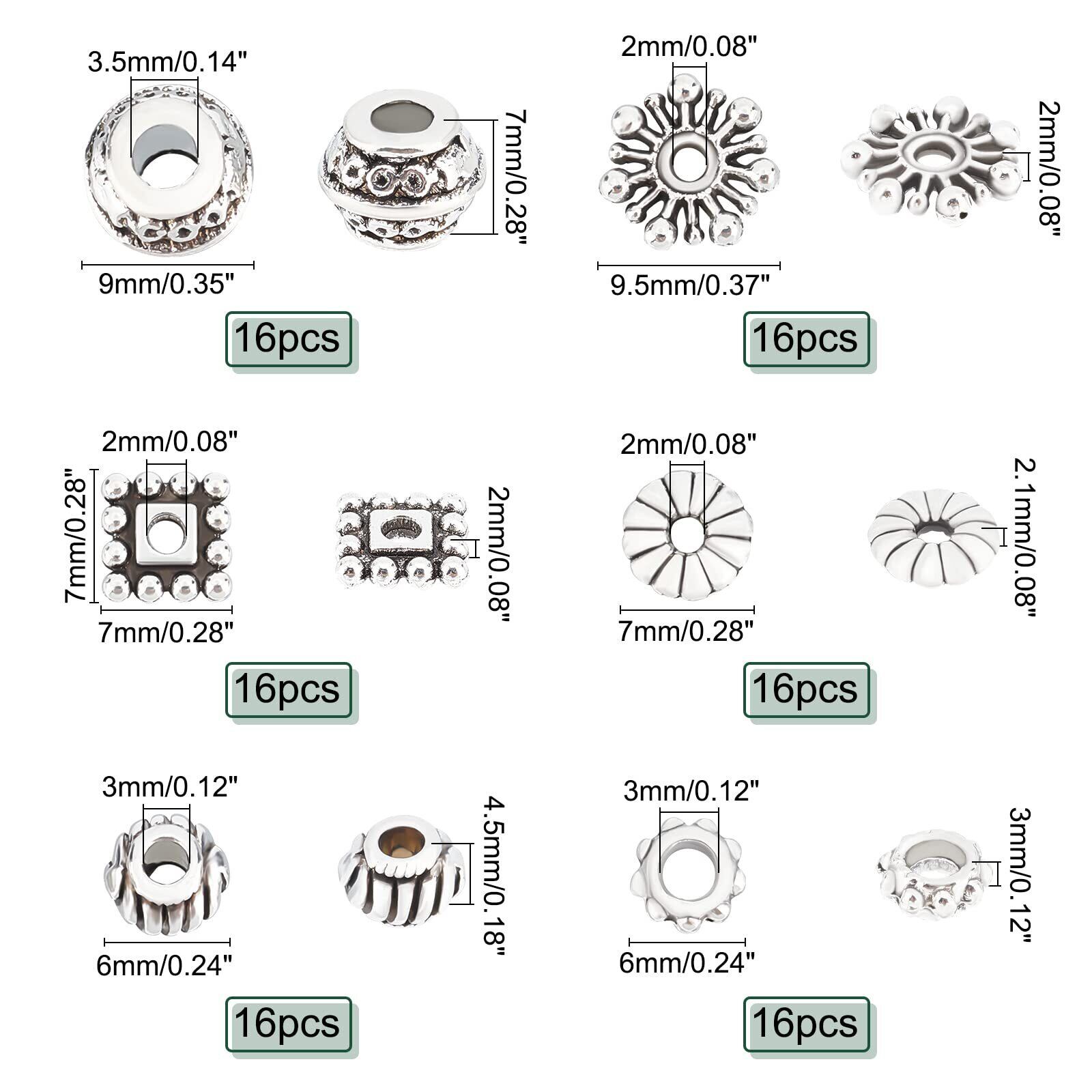 ✿【6種&約216個】:6種類のアンティークシルバーシリーズのスペーサービーズが揃っており、結構豊富で大容量なチベットスタイルビーズセット!