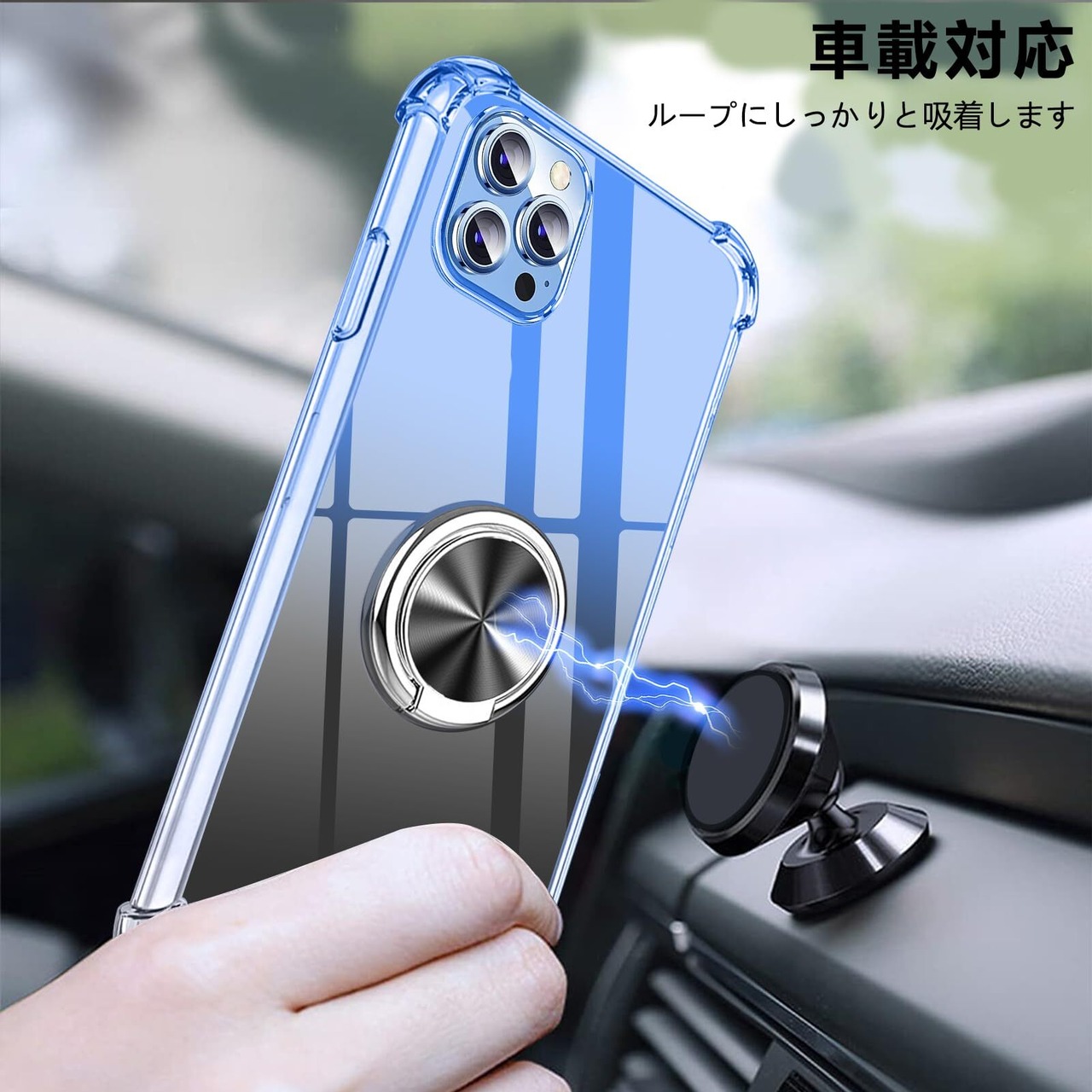 iPhone 12 用 ケース iPhone 12 Pro 用 ケース リング付き クリア 薄型 グラデーション色 ケース 軽量 tpu 耐衝撃 スマホケース 透明 米軍MIL規格取得 おしゃれ 黄変防止防塵一体型 人気 車載ホルダー アイフォン 12/12 プロ用 携帯カバー ブルー/ブラック MD-I-SXZH-06-02