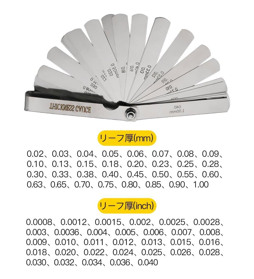 材質:ステンレス リーフ枚数:32枚組 測定範囲:0.02mm~1.00mm
