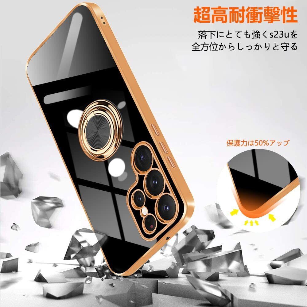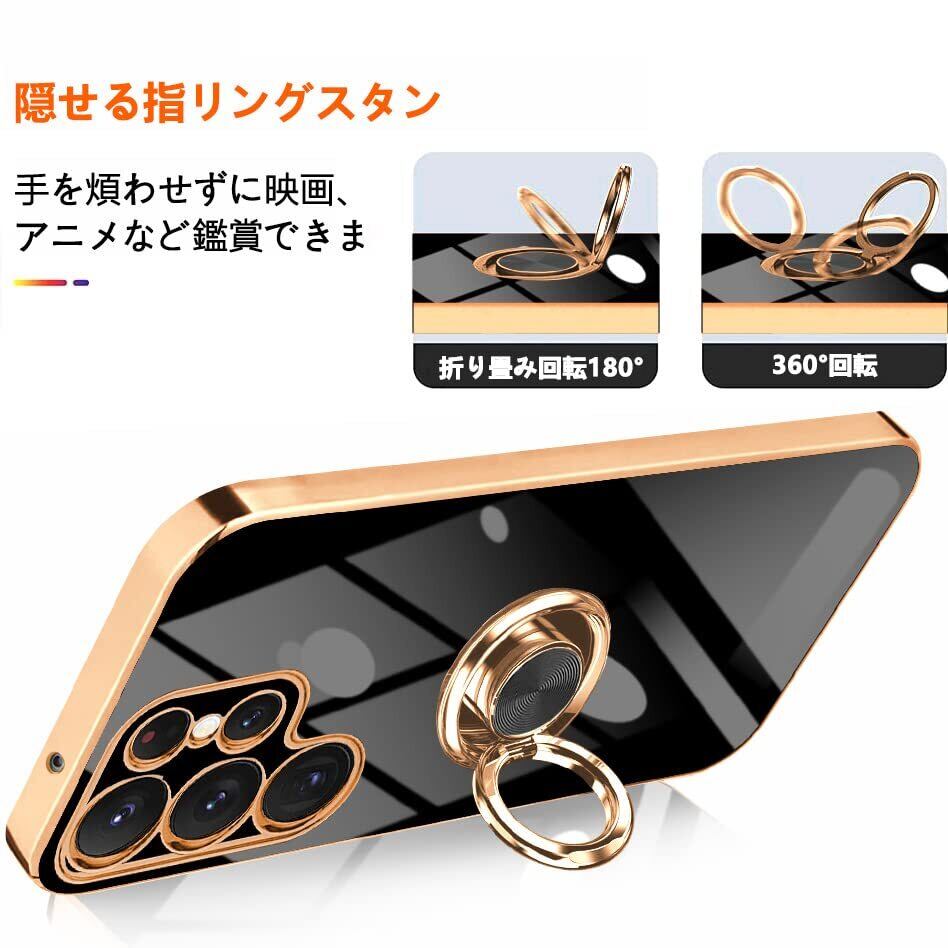 Galaxy S23 Ultra ケース リング付き TPU 耐衝撃 液状 シリコンリングキックスタンドケース SC-52D SCG20 スマホケース 薄型 軽量 米軍MIL規格取得 衝撃吸収 防指紋 スタンド機能 ストラップホール付き サラサラ触り心地 ギャラクシーS23Ultra 6.8 インチ 專用スマホケース