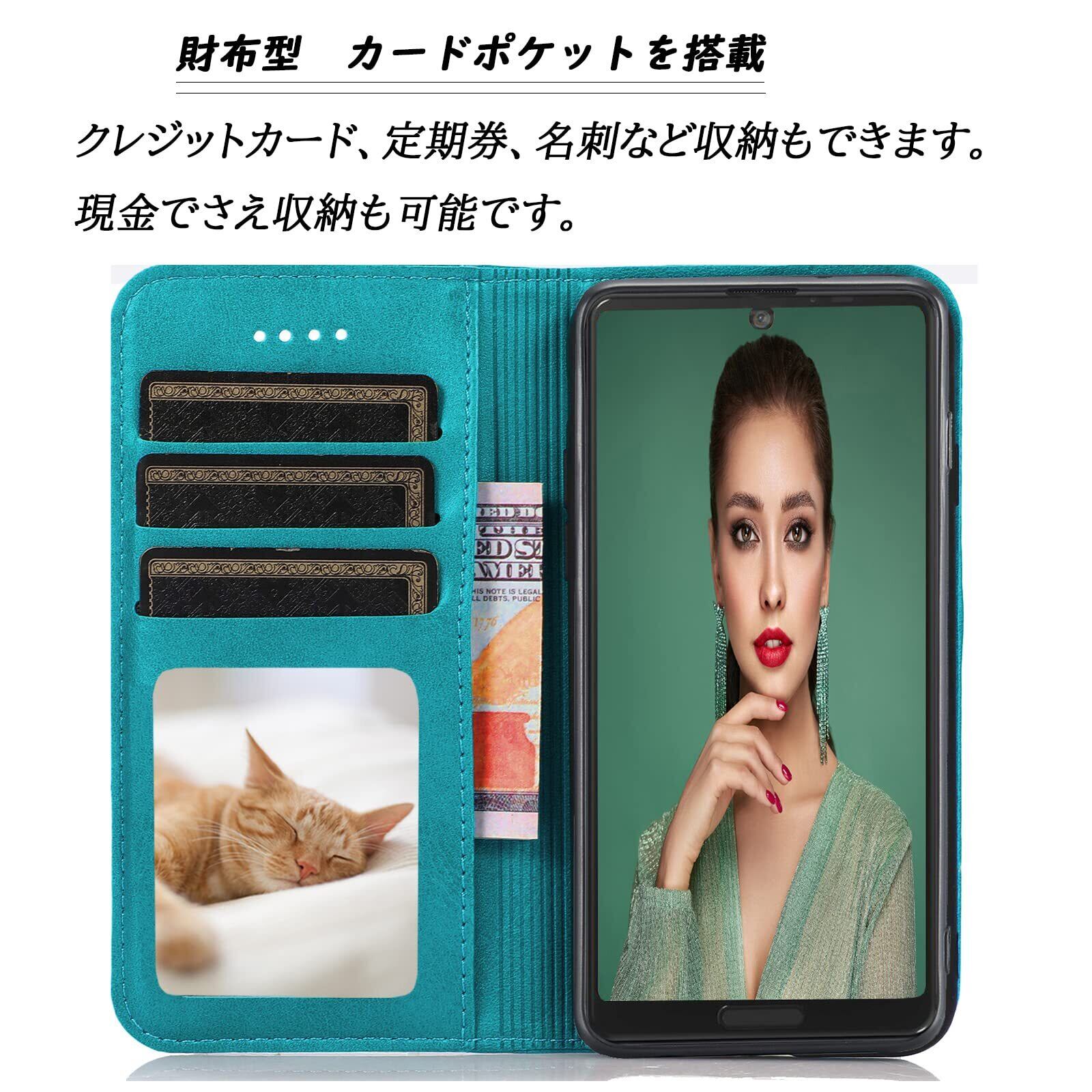 ❷【使う便利性と優れた収納性】横置きスタンド機能た付いて、お好きな角度で動画鑑賞や読書などを楽しめます。ケースの裏側にカードポケット3つ, お札入れポケット一つ、名刺や定期券の収納に優れていて、ちょっととしたお出かけてもこれで十分です;