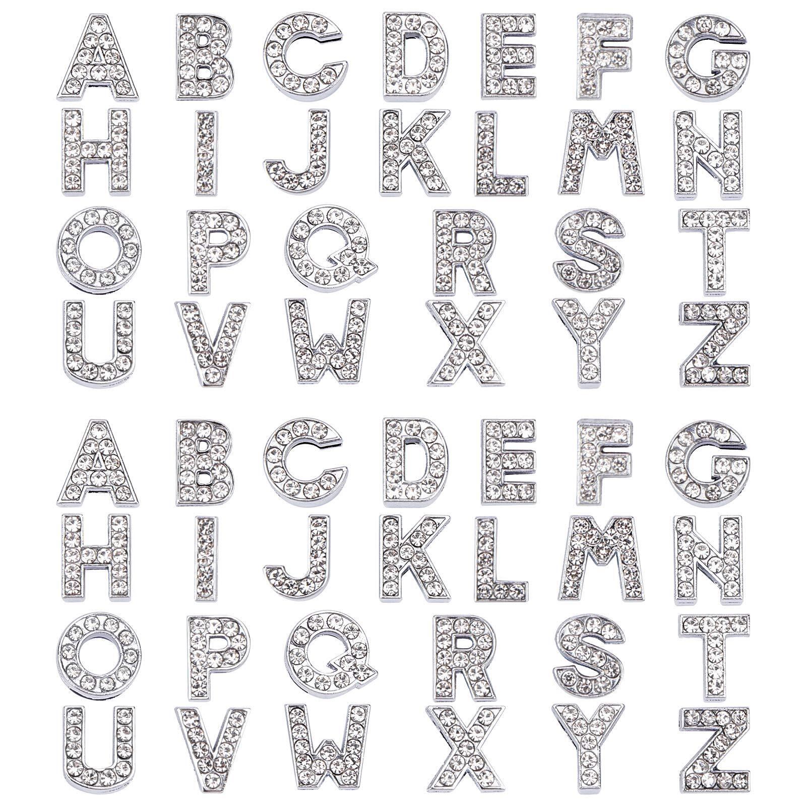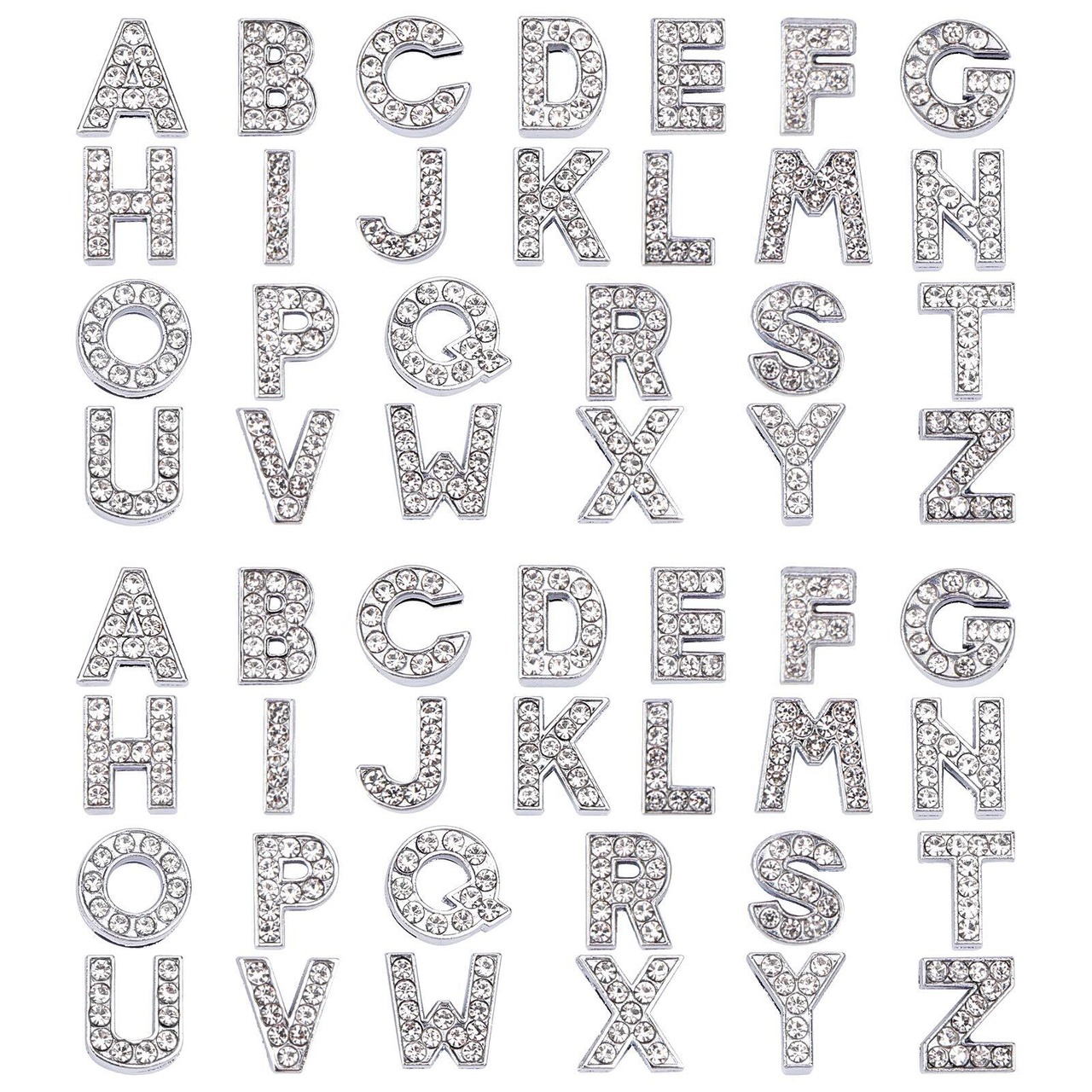 [SUNNYCLUE] 2セット52個 ラインストーン アルファベット チャーム ジルコン パーツ イニシャル ブレスレット 文字 ペンダント レター ネックレス スライド デコパーツ チョーカー 大穴チャーム シルバー色 26文字セット A-Z柄 合金ペンダント メタルパーツ チャームパーツ アクセサリーパーツ 基礎パーツ ジュエリー作り デコキット クラフト手芸 手作りキット DIY飾り物