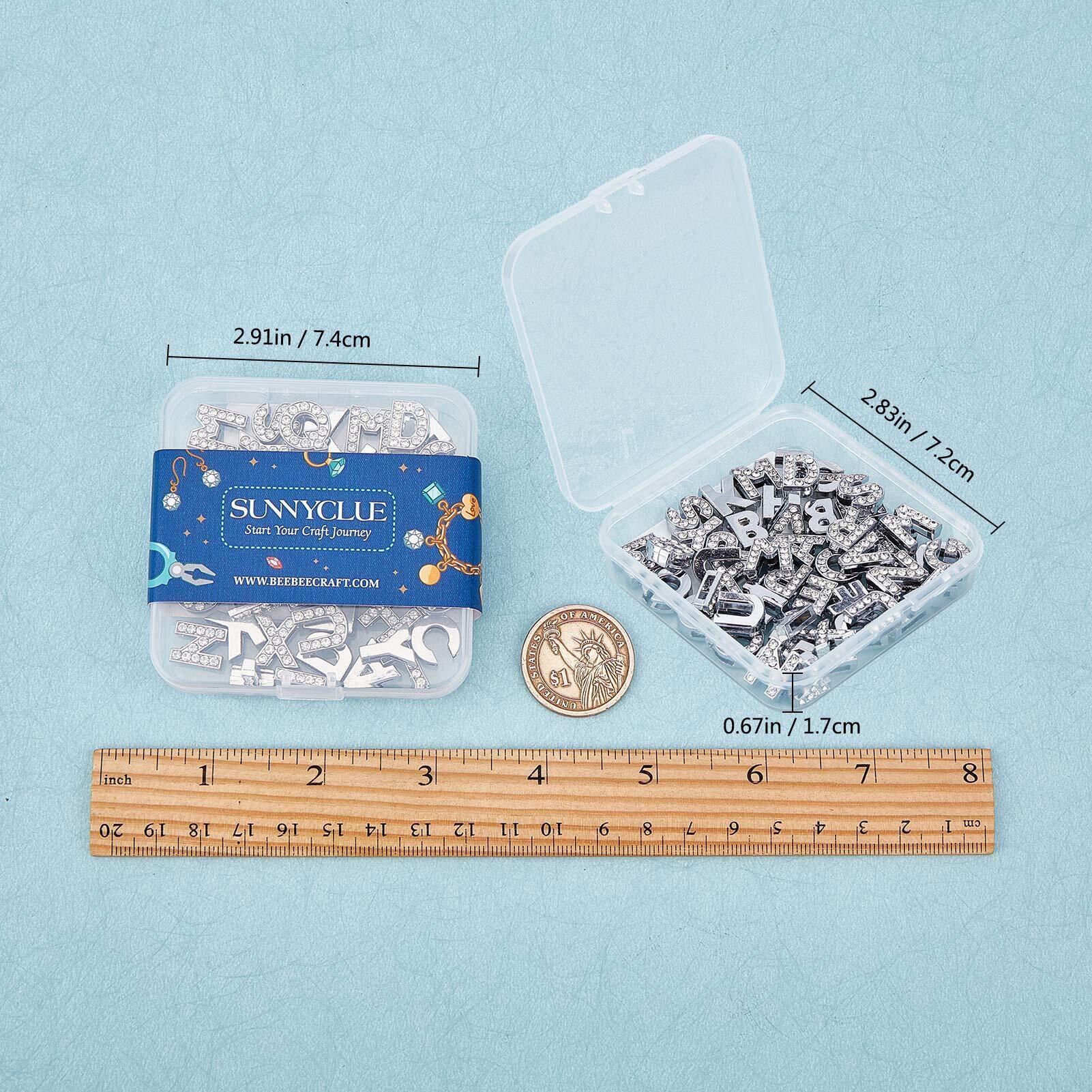 【サイズと数量】:アルファベットチャーム*2セット52個:12x3~12x4.5mm、穴: 8x2mm.収納箱*1つ:7.4x7.2x1.7cm.