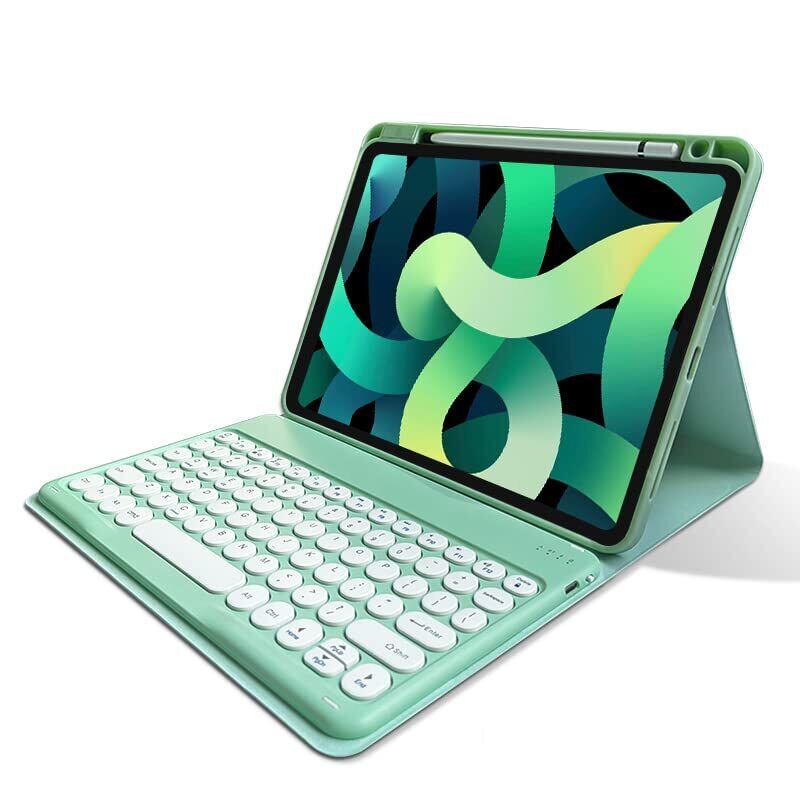 iPad 第9/8/7世代 10.2インチ キーボードケース 丸型キー 上側ペンシルホルダー付き iPadAir3 iPadPro10.5 Bluetooth キーボード カバー マグネット 分離式 多角度調整 可愛い 学生 ビジネス (ミント)