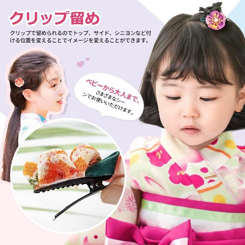 【髪飾り用途】お花のつまみ細工の髪飾りです。卒園式、七五三、お正月、お祝い事、成人式、卒業式、華やかなお席の和装、振袖姿、浴衣にぴったりします。
